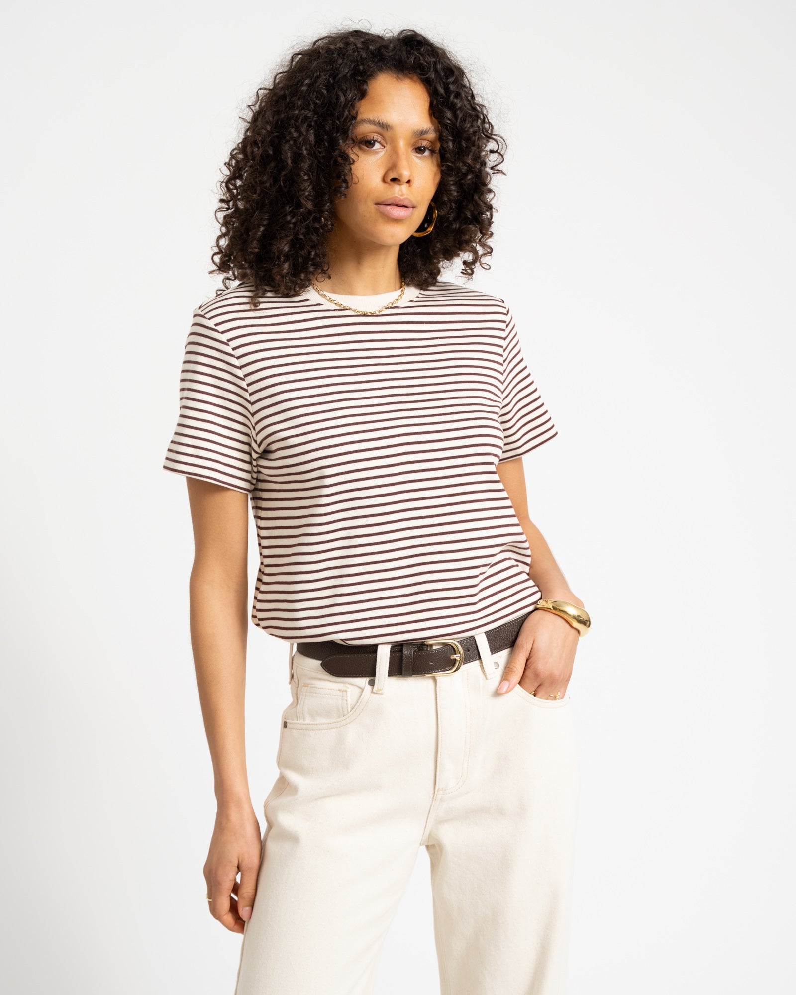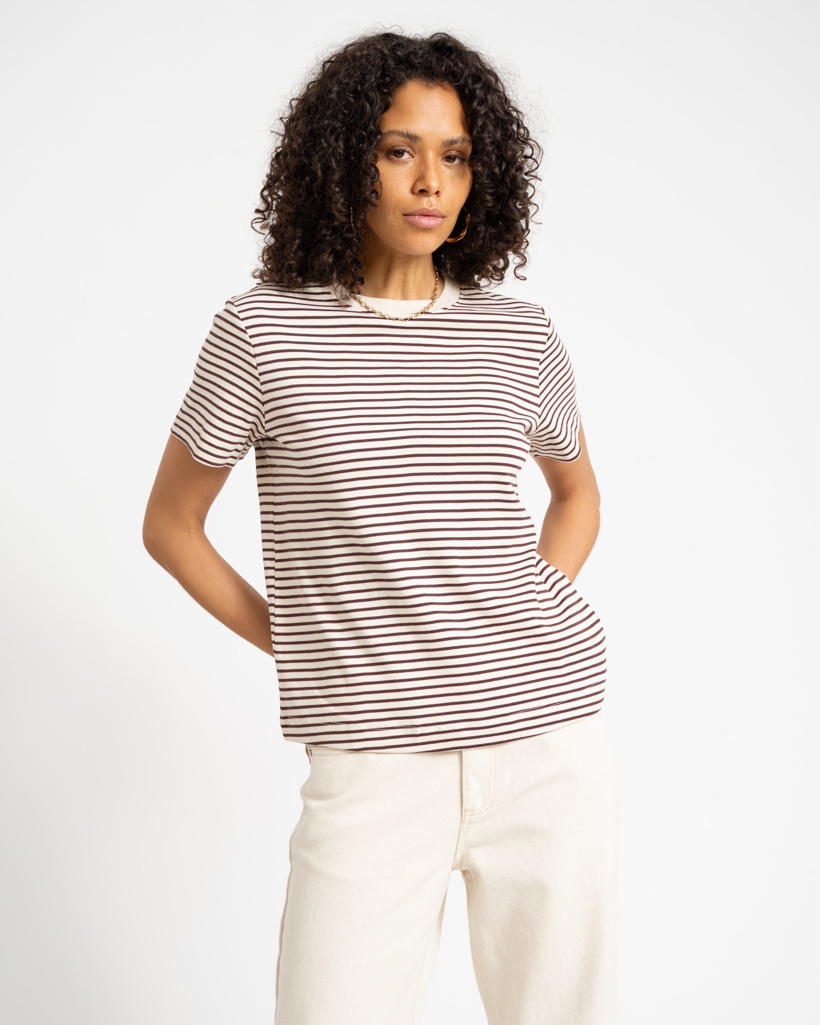 AWARE JADA NAIMA O-NECK T-SHIRT Birch/Bitter Chocolate