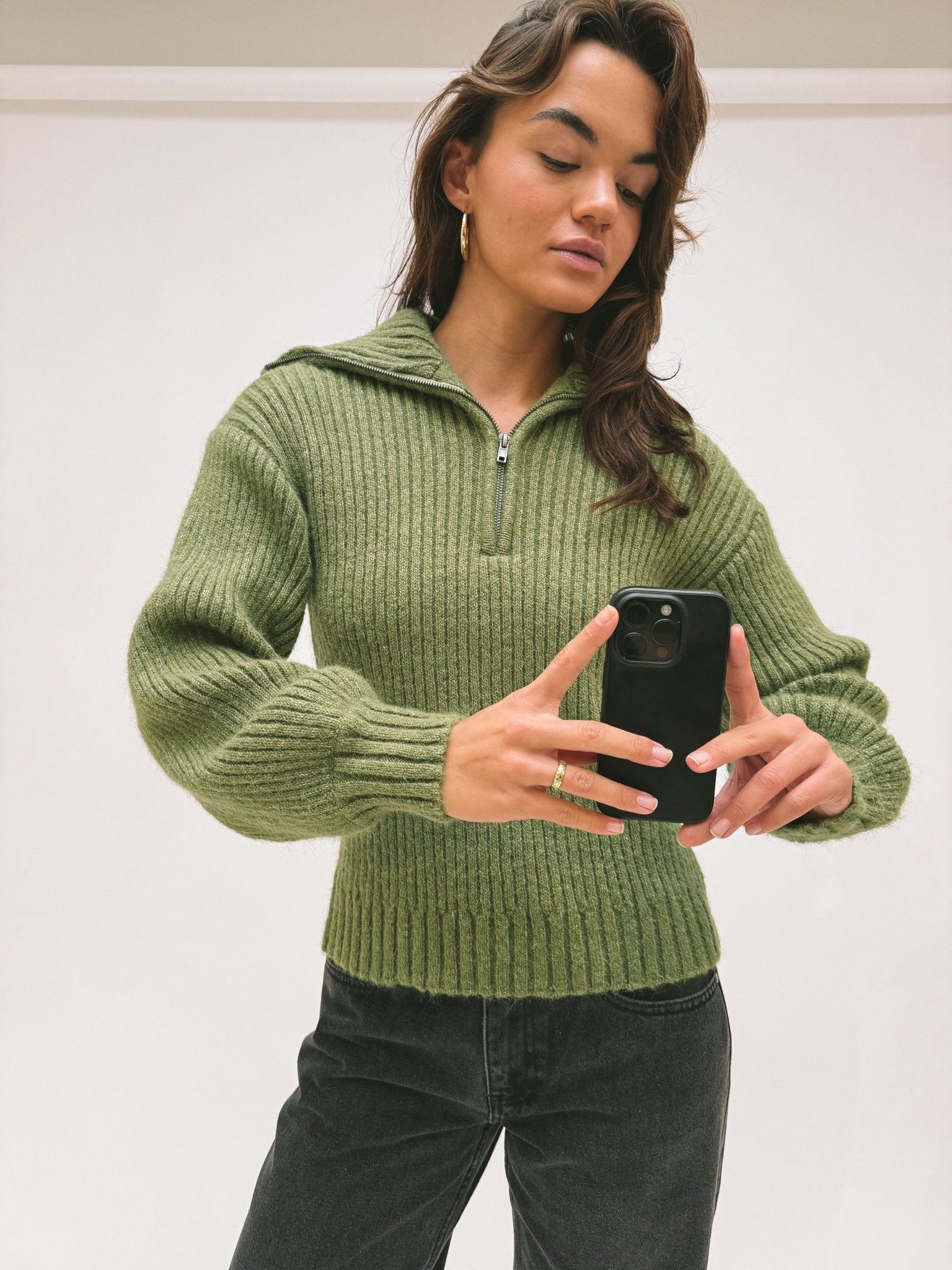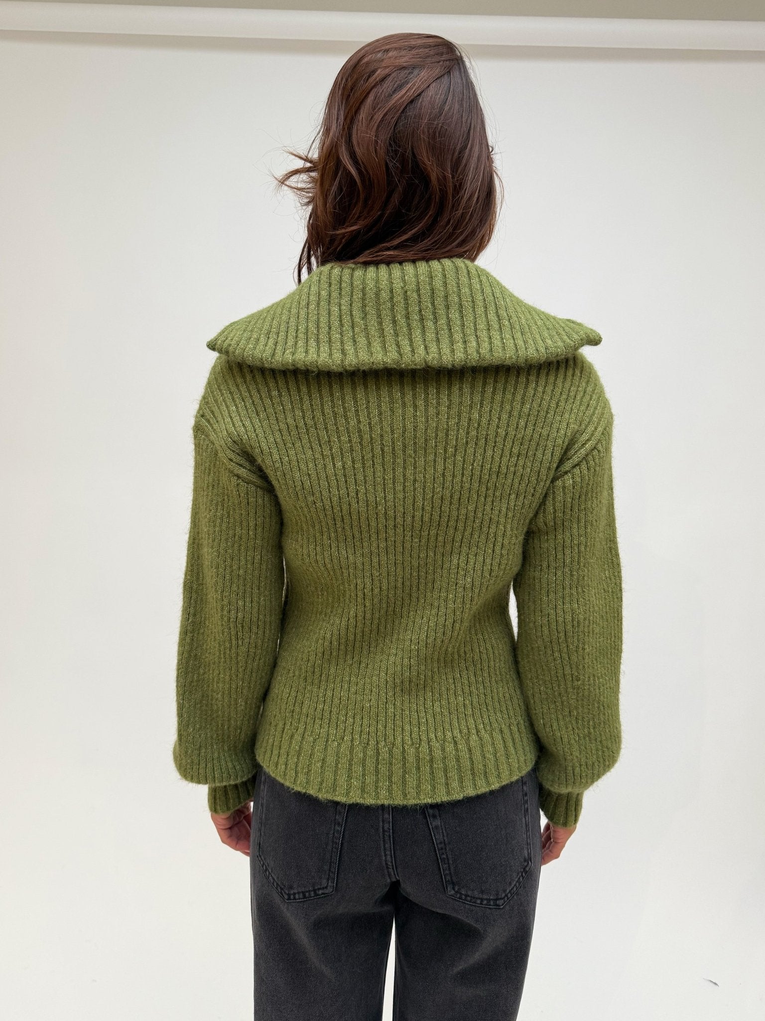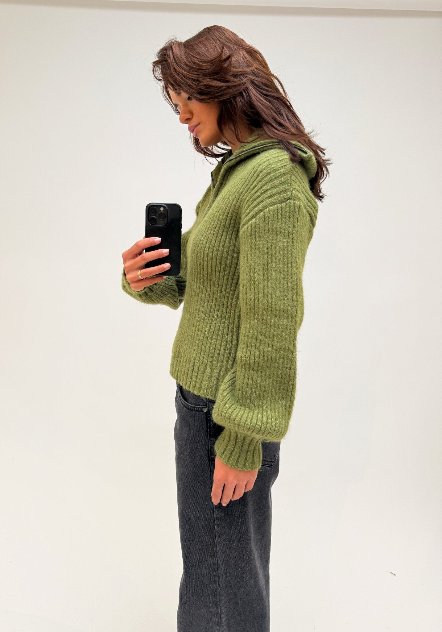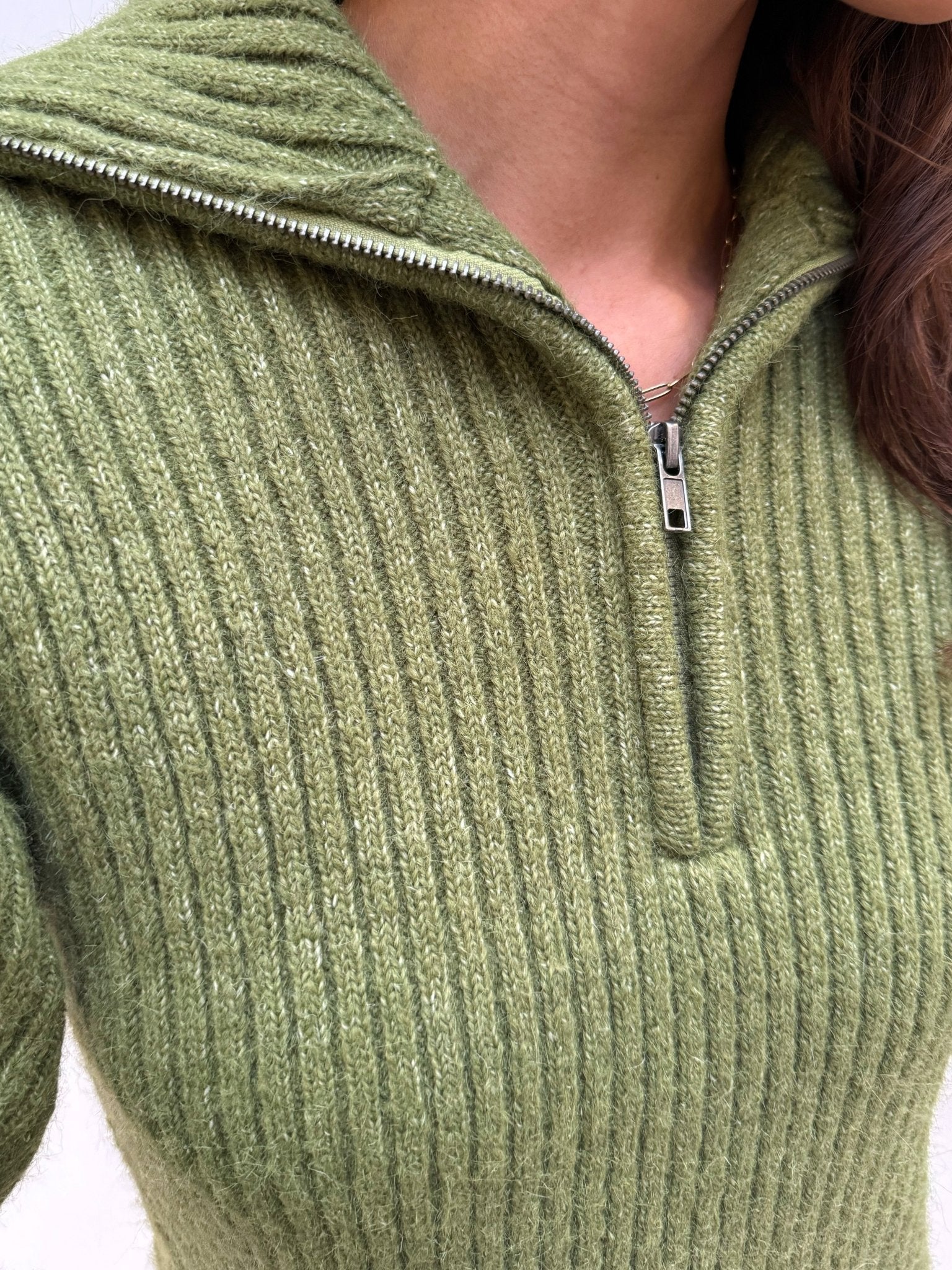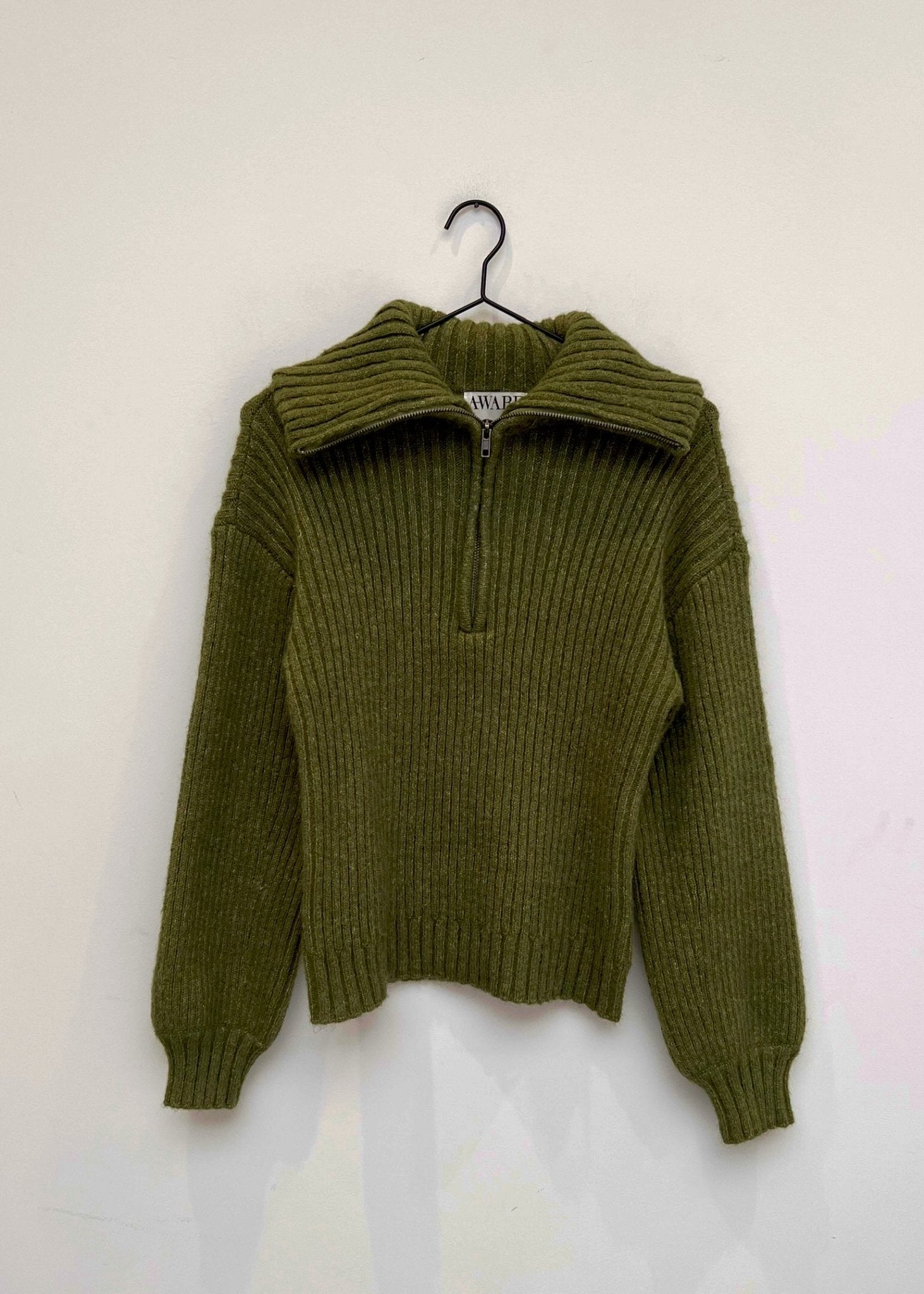AWARE Ulla High Neck Half Zip Knit Calliste Green