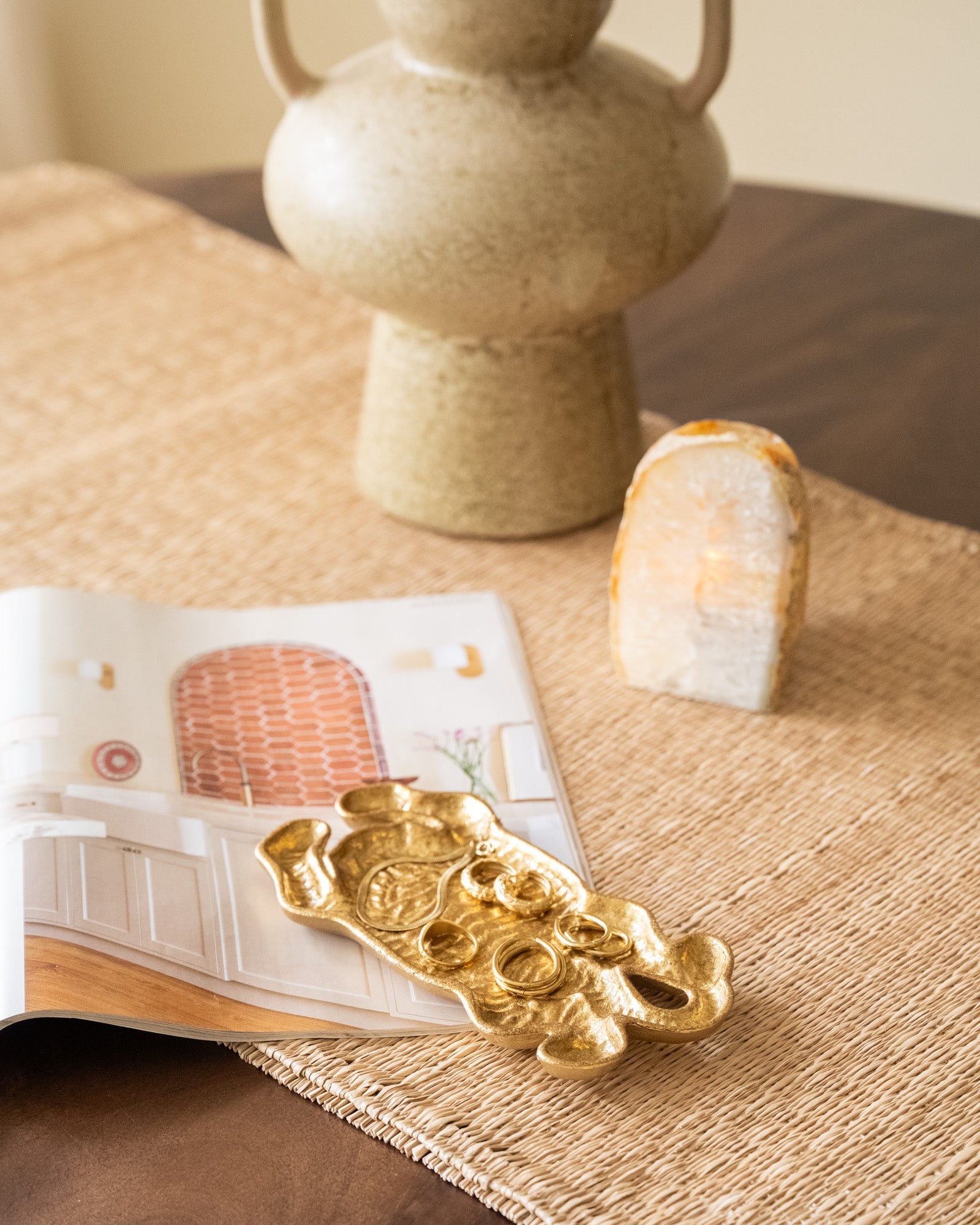 Deze leuke tray van Bloomingville is gemaakt van gietijzer met een goudkleurige afwerking. De Tray heeft de vorm van een gestileerde tijger en is een decoratief element. Perfect om je sieraden stijlvol op te bergen.