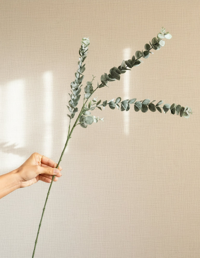 Breng een vleugje natuurlijke rust in huis met de Eucalyptus Kunsttak van Bloomingville. De grijsgroene blaadjes ogen levensecht en voegen direct een frisse, serene uitstraling toe aan elk interieur. Gebruik de tak solo in een mooie vaas voor een minimalistische look, of combineer met andere kunstbloemen voor een voller boeket. Geen verzorging nodig, blijft het hele jaar door mooi!