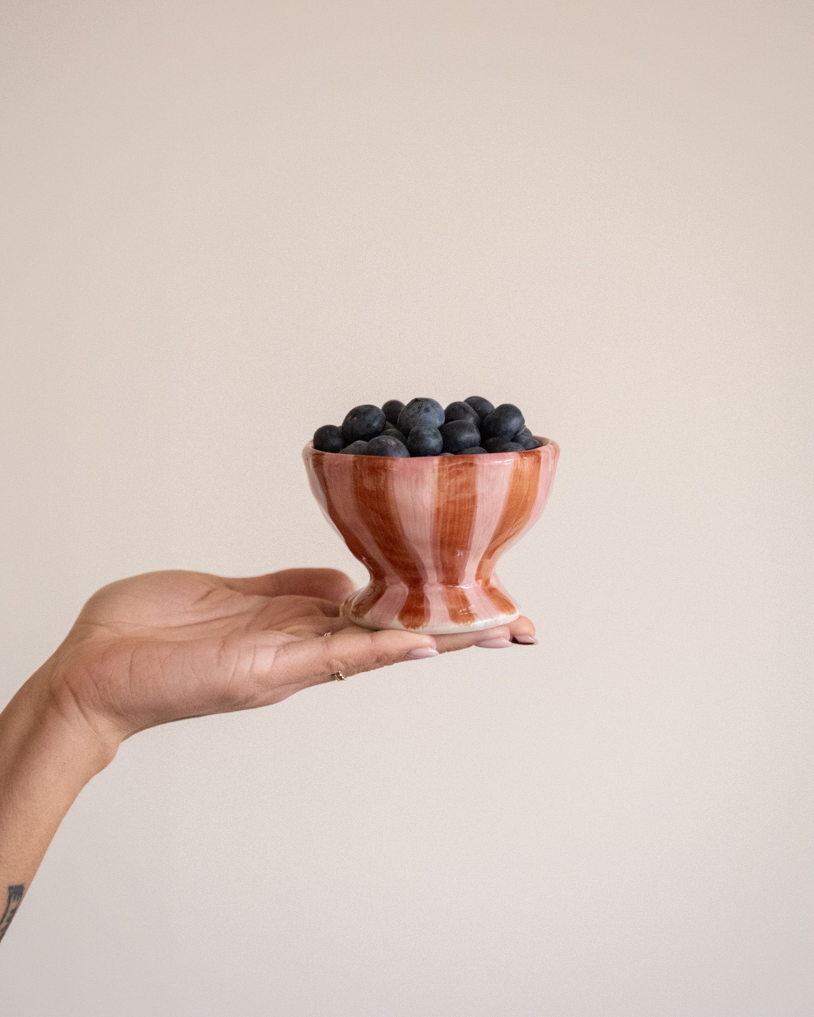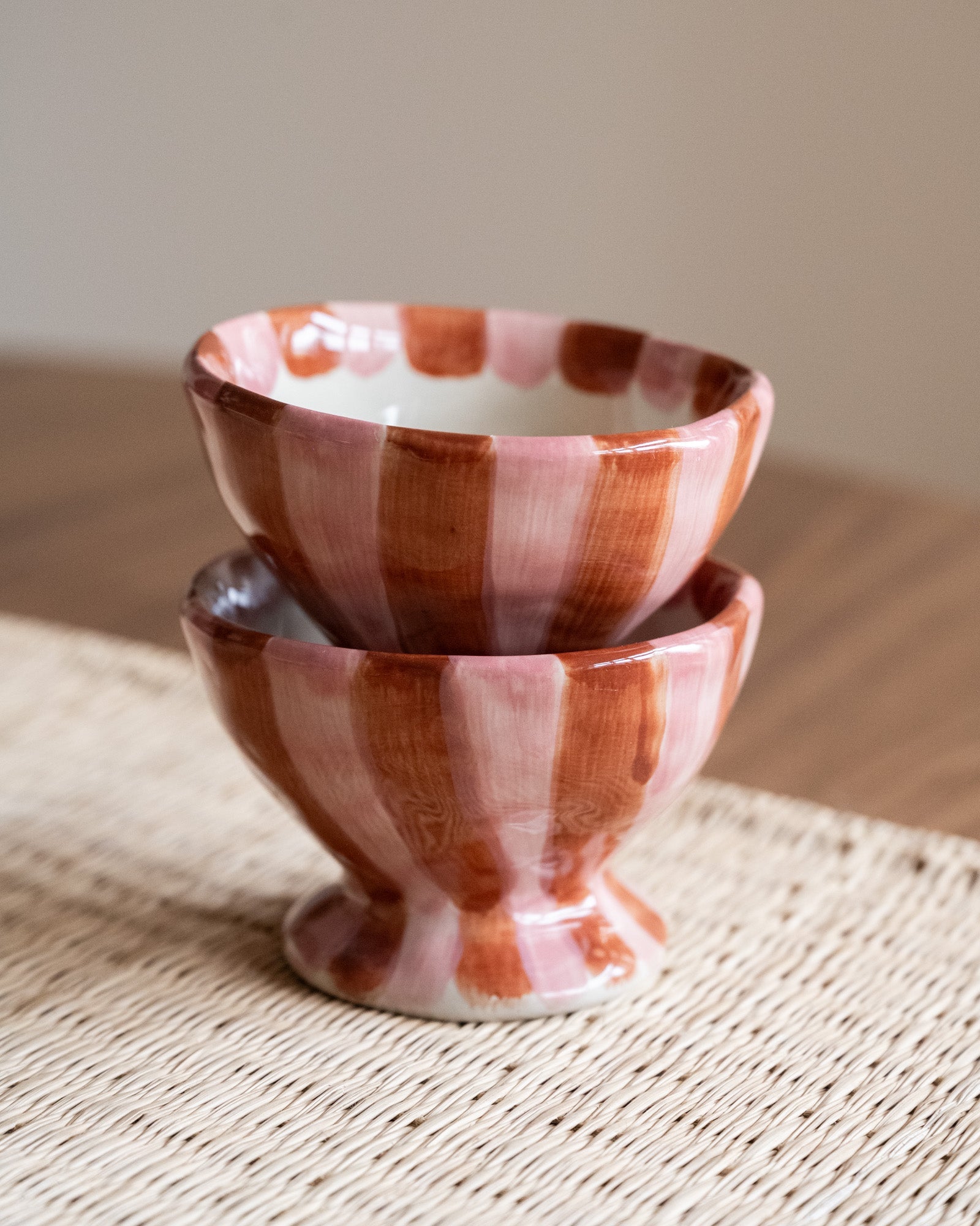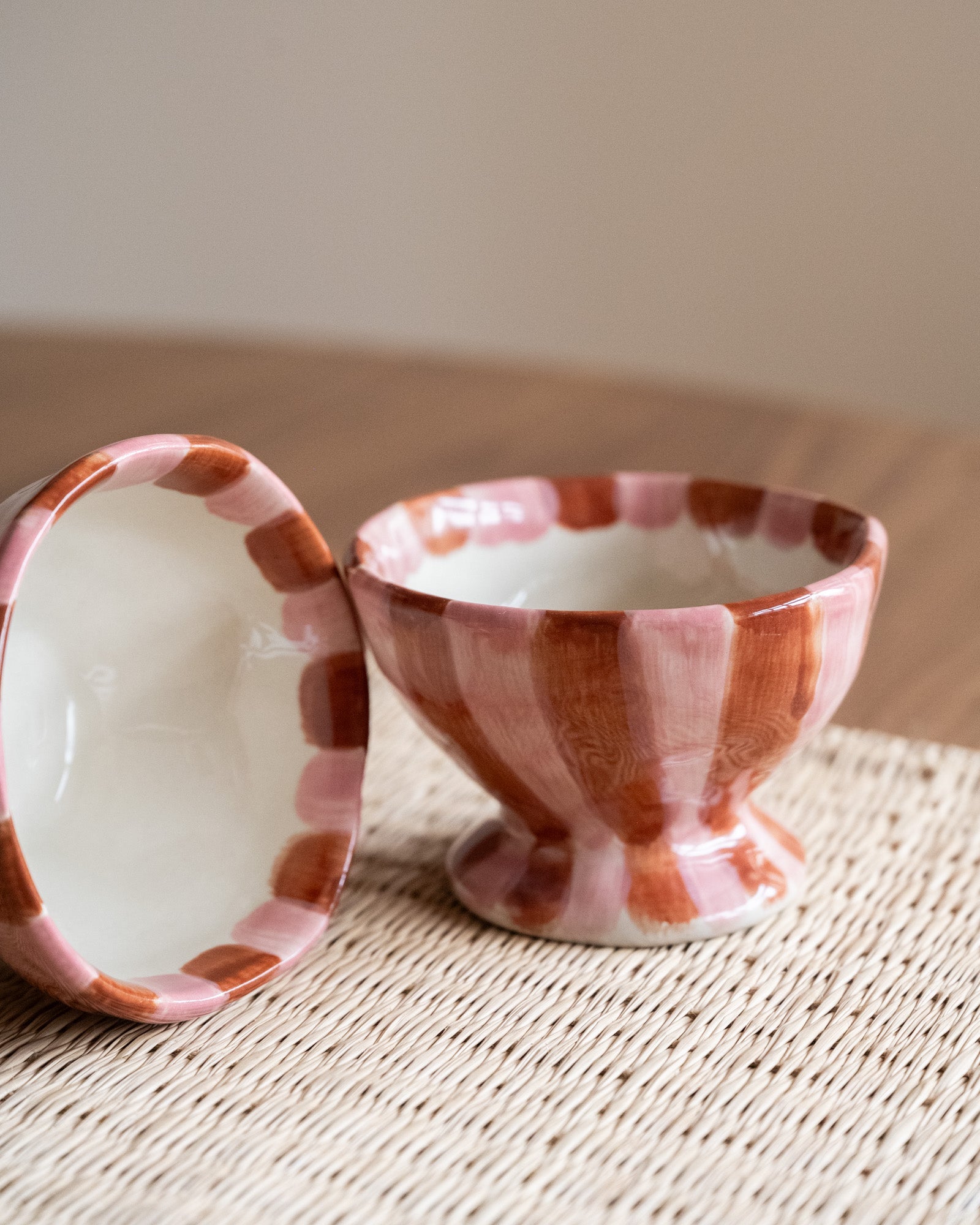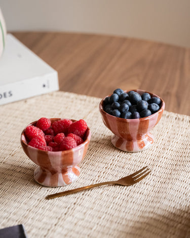 De Nini Bowl van Bloomingville is een keramieken schaaltje met een ronde vorm en handgeschilderde strepen in roze en warme bordeaux tinten. Perfect voor fruit, yoghurt of kleine snacks, maar ook mooi als decoratief accent op tafel of in een open kast. Elk exemplaar is uniek door het handgeschilderde patroon.