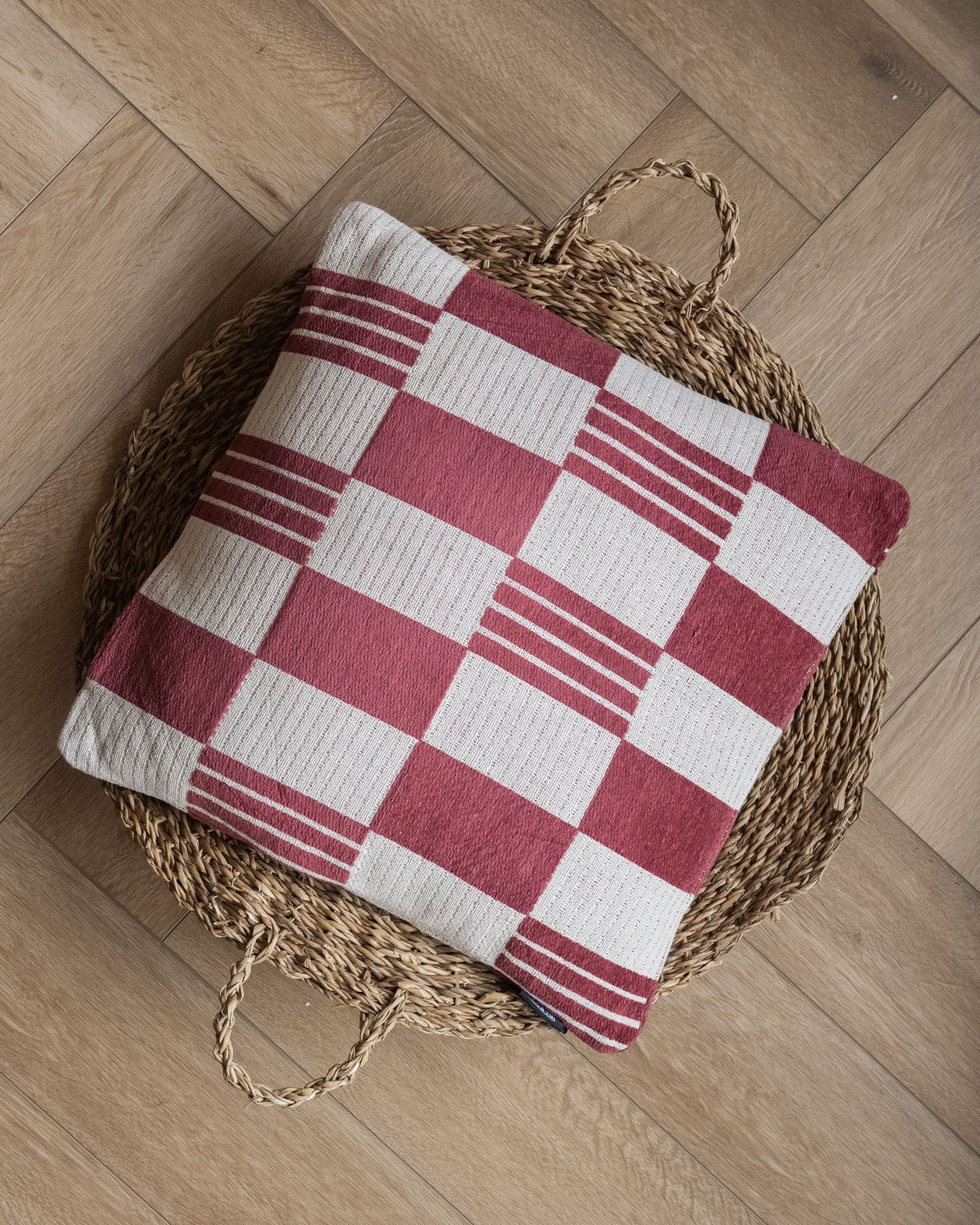 Geef je interieur een stijlvolle update met de Cushion Grid Burgundy. Dit kussen heeft een speels ruitpatroon in bordeauxrode en beige tinten en voegt direct warmte en textuur toe aan je bank of bed. Perfect om te mixen & matchen voor een cozy, trendy look in je woonkamer of slaapkamer.