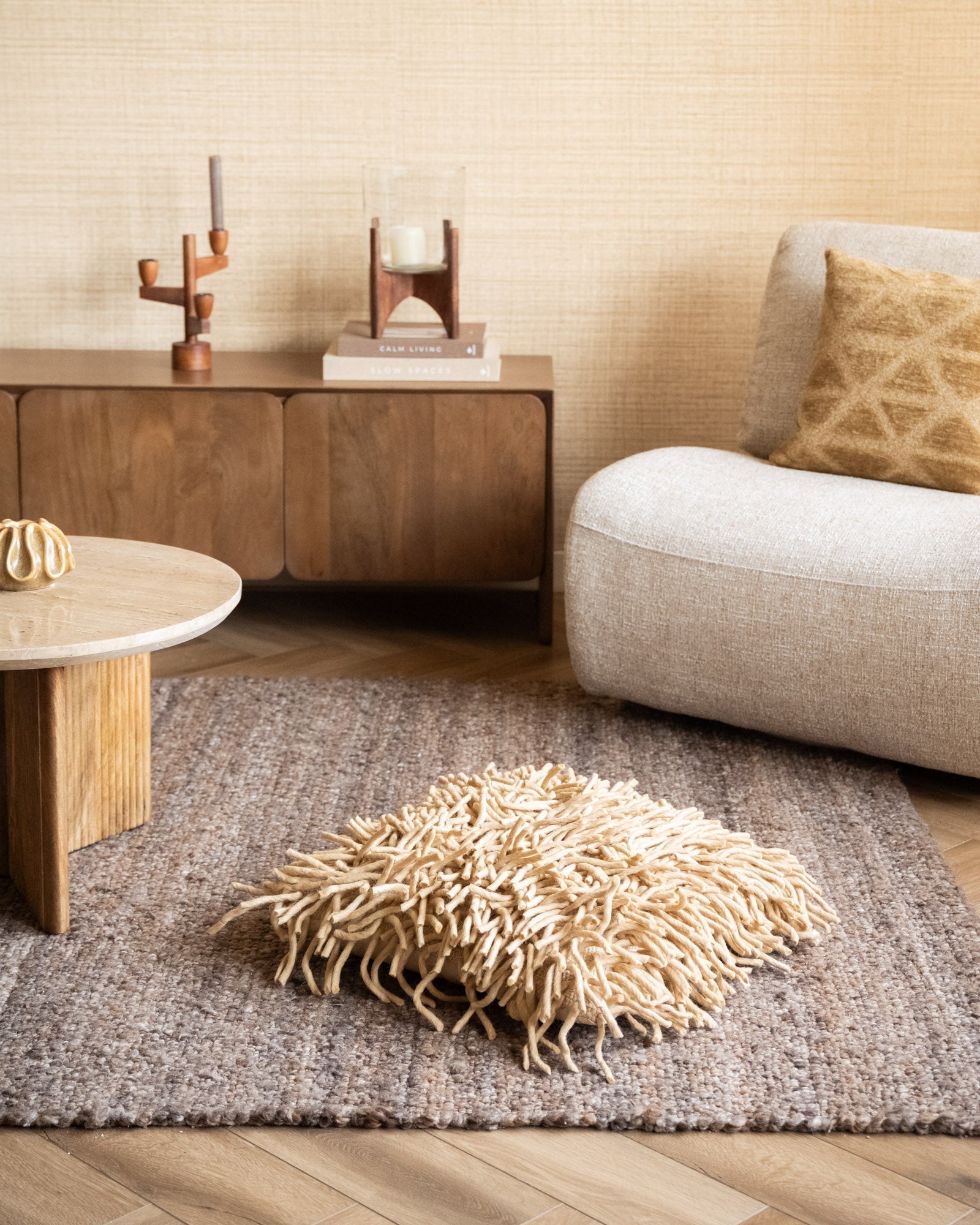 Cushion Moppy Beige is een speels sierkussen met lange, zachte franjes die direct textuur en warmte toevoegen aan je interieur. De beige tint past perfect in een naturel, modern of bohemian interieur en combineert moeiteloos met andere kussens en materialen. Leg het kussen op je bank, fauteuil of bed voor een cosy en trendy touch.