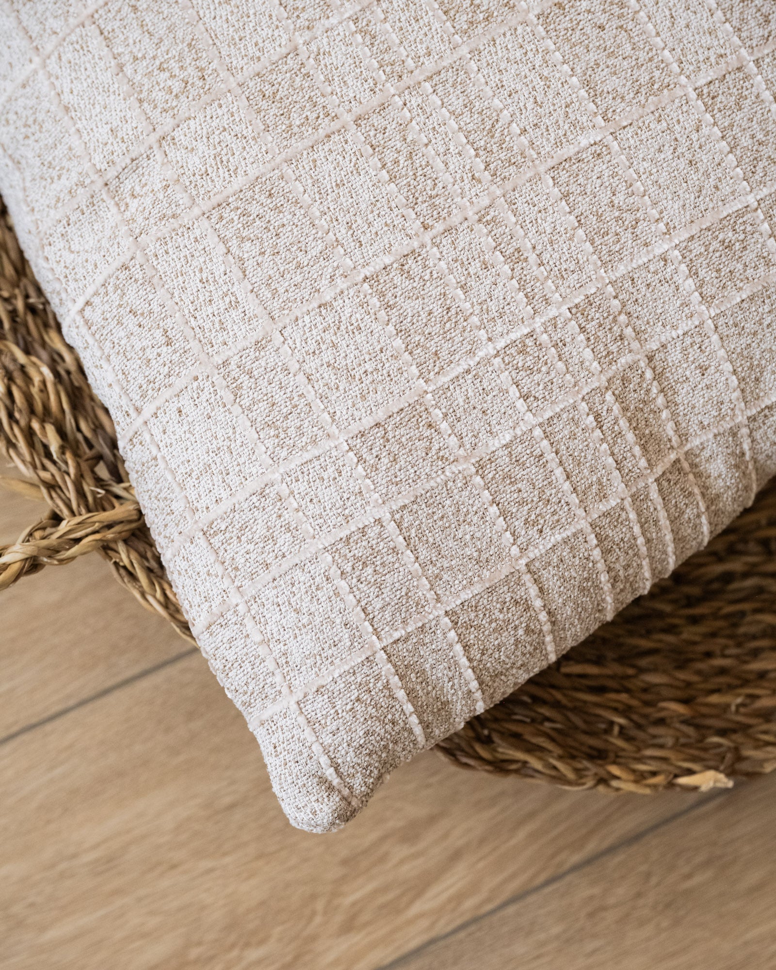 Geef je interieur een rustige en stijlvolle basis met Cushion Pure Beige. De zachte beige tint en het subtiele geweven ruitpatroon zorgen voor een warme en tijdloze uitstraling. Perfect om te mixen en matchen met andere kussens en je bank, fauteuil of bed een zachte, cozy upgrade te geven.