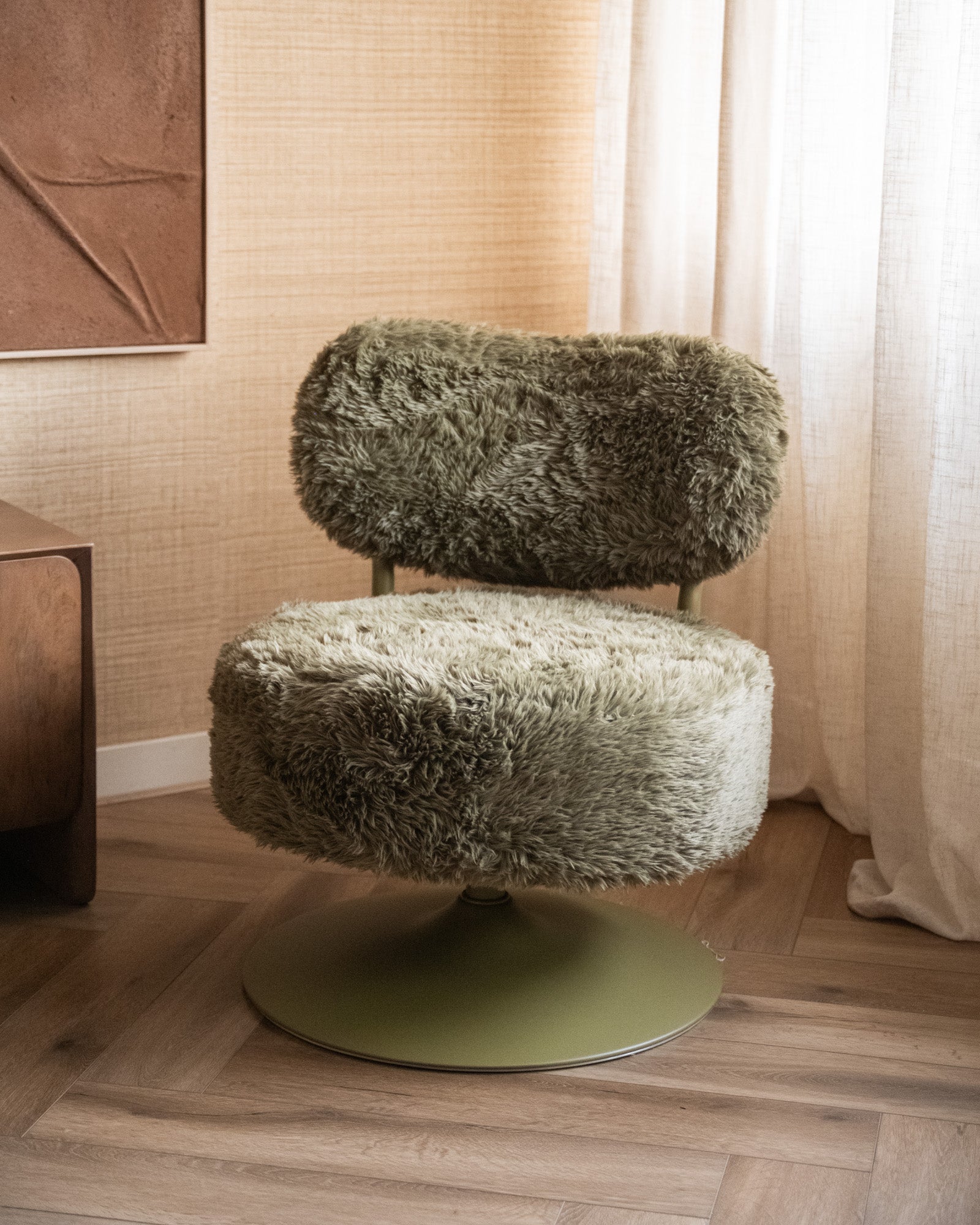 Zin in comfort with a twist? De Swivel Chair Furlo Furry Olive Green is hét fluffy statement piece waar je in wegzakt zodra je gaat zitten. De zachte furry bekleding en 360-graden draaifunctie maken ’m perfect voor chillen, bingewatchen of een stylish upgrade van je kamer. Een cozy must-have voor iedereen die houdt van comfy vibes met een playful touch.