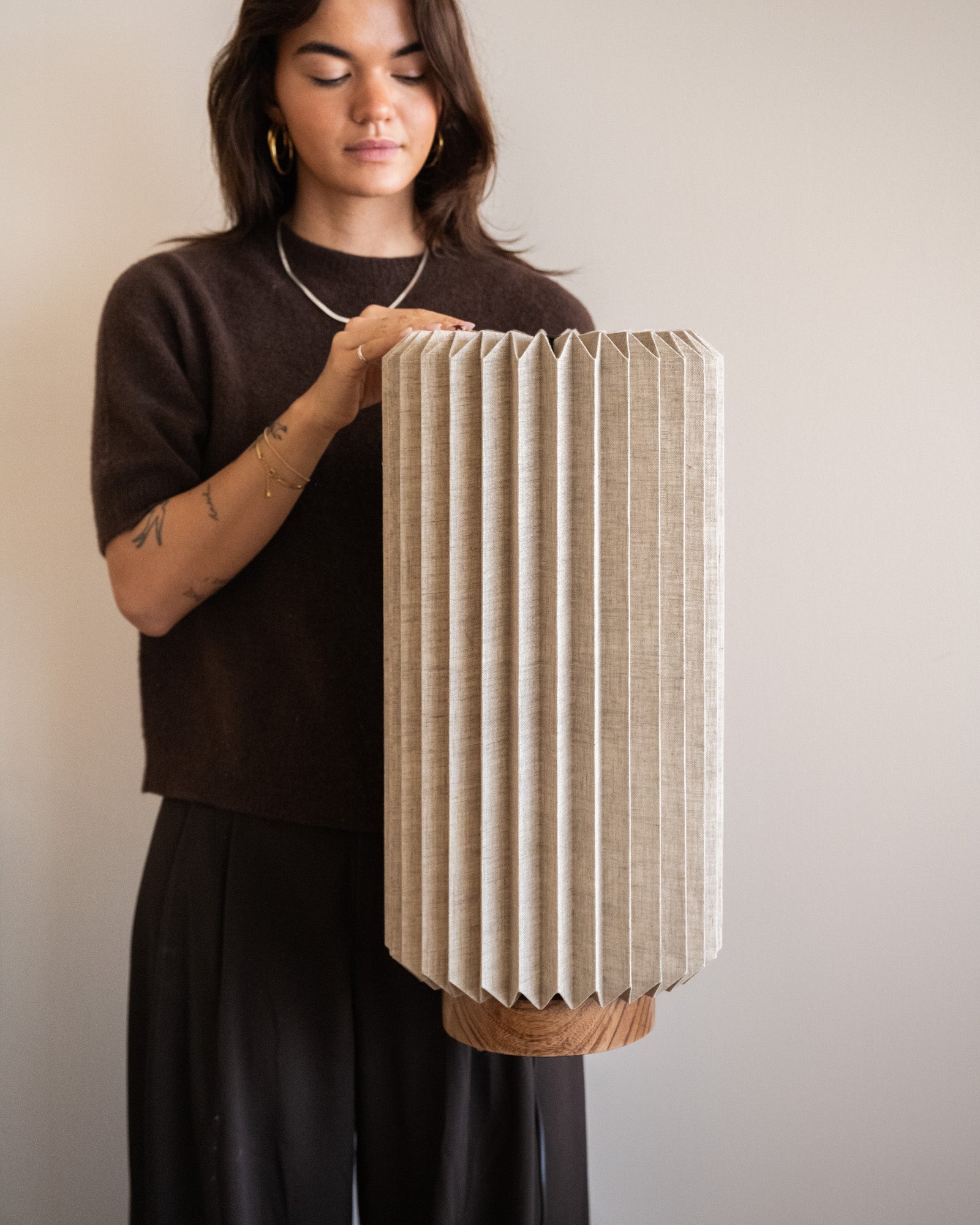 Het minimalistische ontwerp van de lamp maakt hem veelzijdig en geschikt voor verschillende interieurstijlen, van Japandi tot modern. Breng warmte, stijl en een vleugje zen in je interieur en is daarom geschikt voor in de woonkamer, slaapkamer of werkkamer. De lamp heeft een stevige linnen kap en een prachtige houten voet.