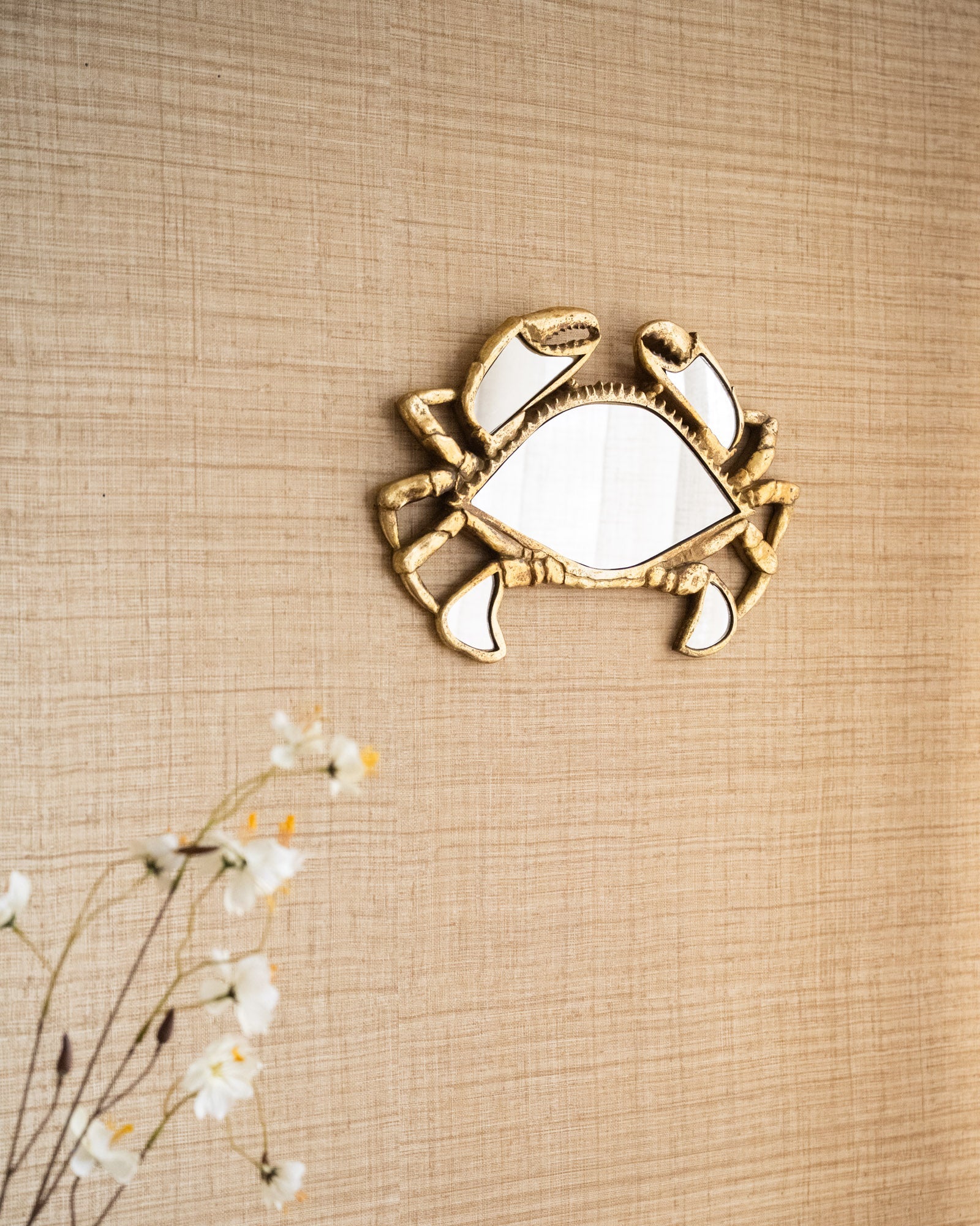 Mirror Crab Gold is een speelse spiegel in de vorm van een krab met een luxe goudkleurige afwerking. Het sculpturale design geeft je interieur een unieke en artistieke touch en maakt van deze spiegel een echte eyecatcher aan de muur of op een plank. Perfect om een lege wand op te fleuren en tegelijk een verrassend accent toe te voegen aan je hal, woonkamer of slaapkamer.