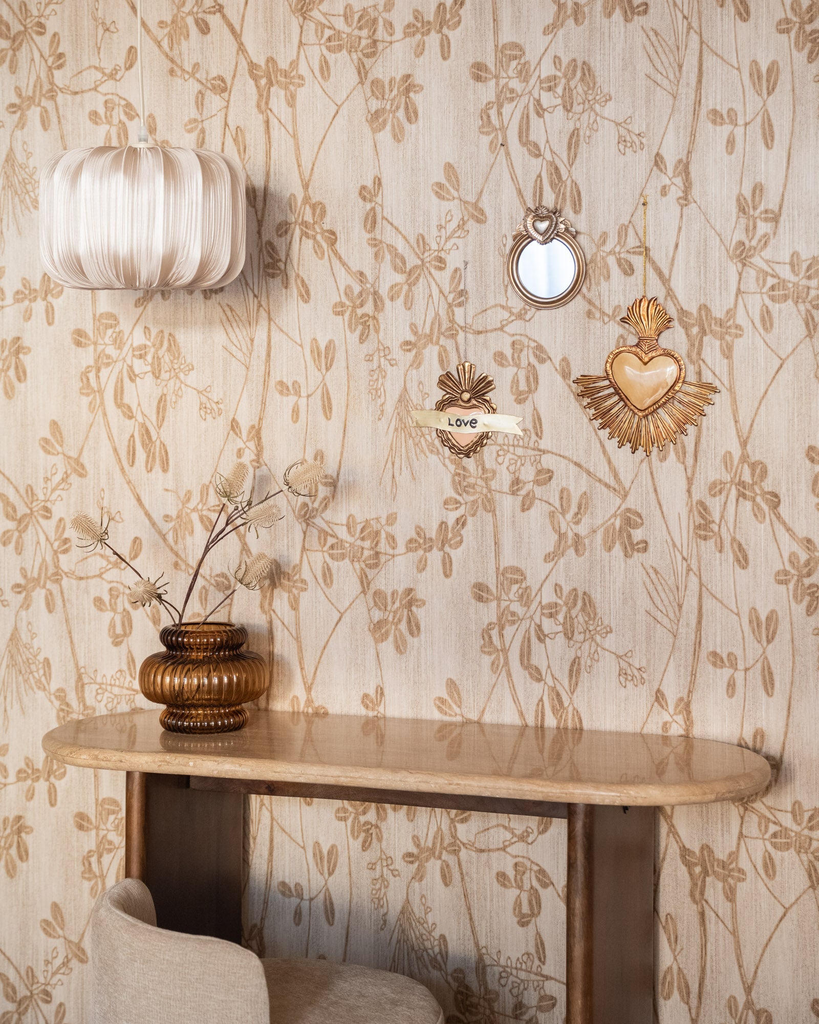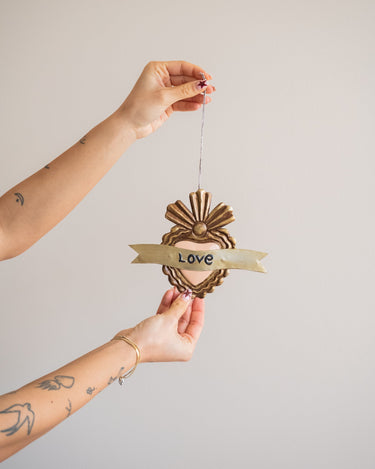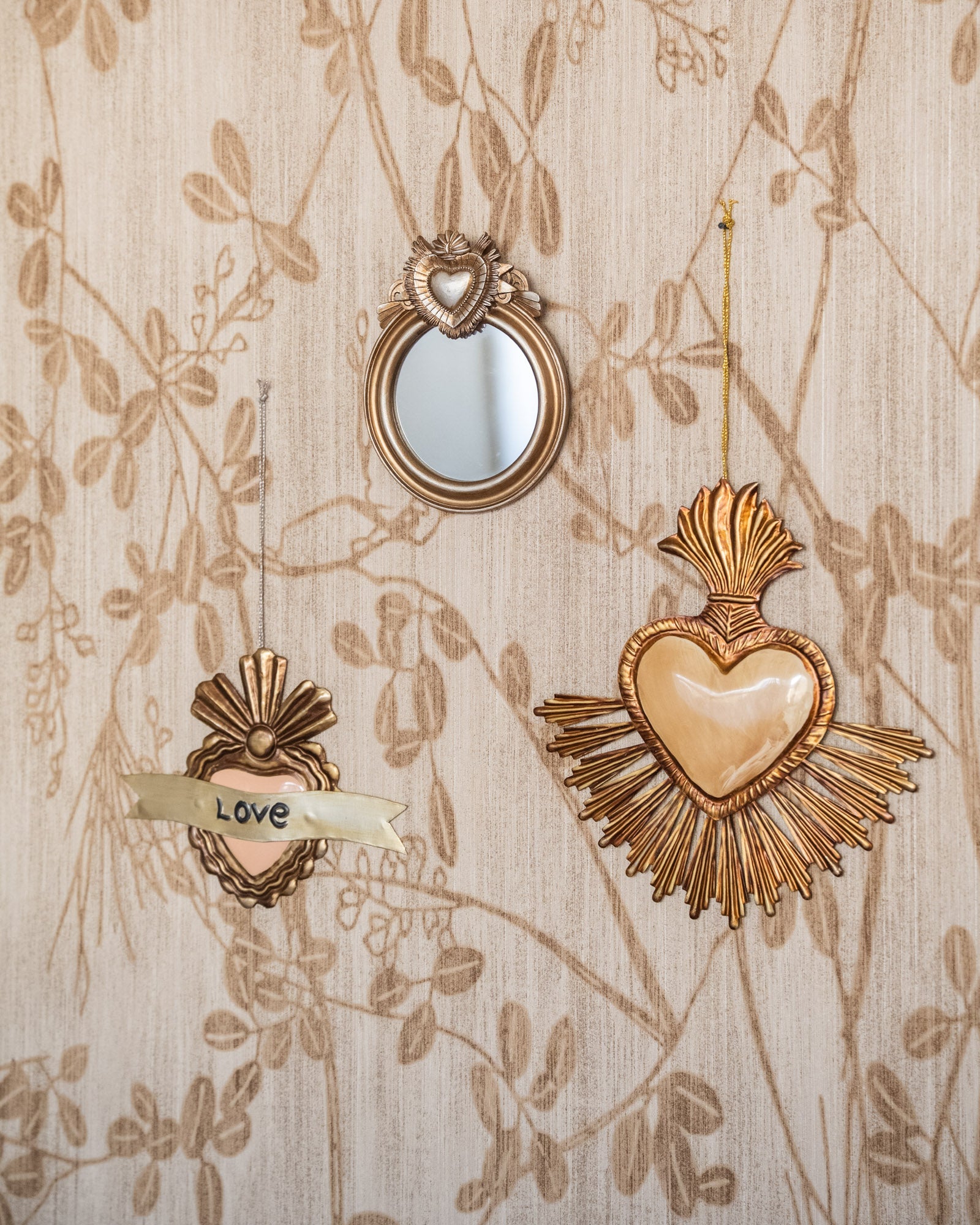 Breng een romantische en speelse touch in je interieur met de Wall Deco Pink Heart Love. Deze charmante wanddecoratie heeft een klassiek hartvormig design met een zachte roze kern en een goudkleurige banner met het woord Love. Perfect om op te hangen aan de muur, in een gallery wall of als subtiel accent in de slaapkamer, hal of woonkamer. Een klein decoratief item met een warme en liefdevolle uitstraling.