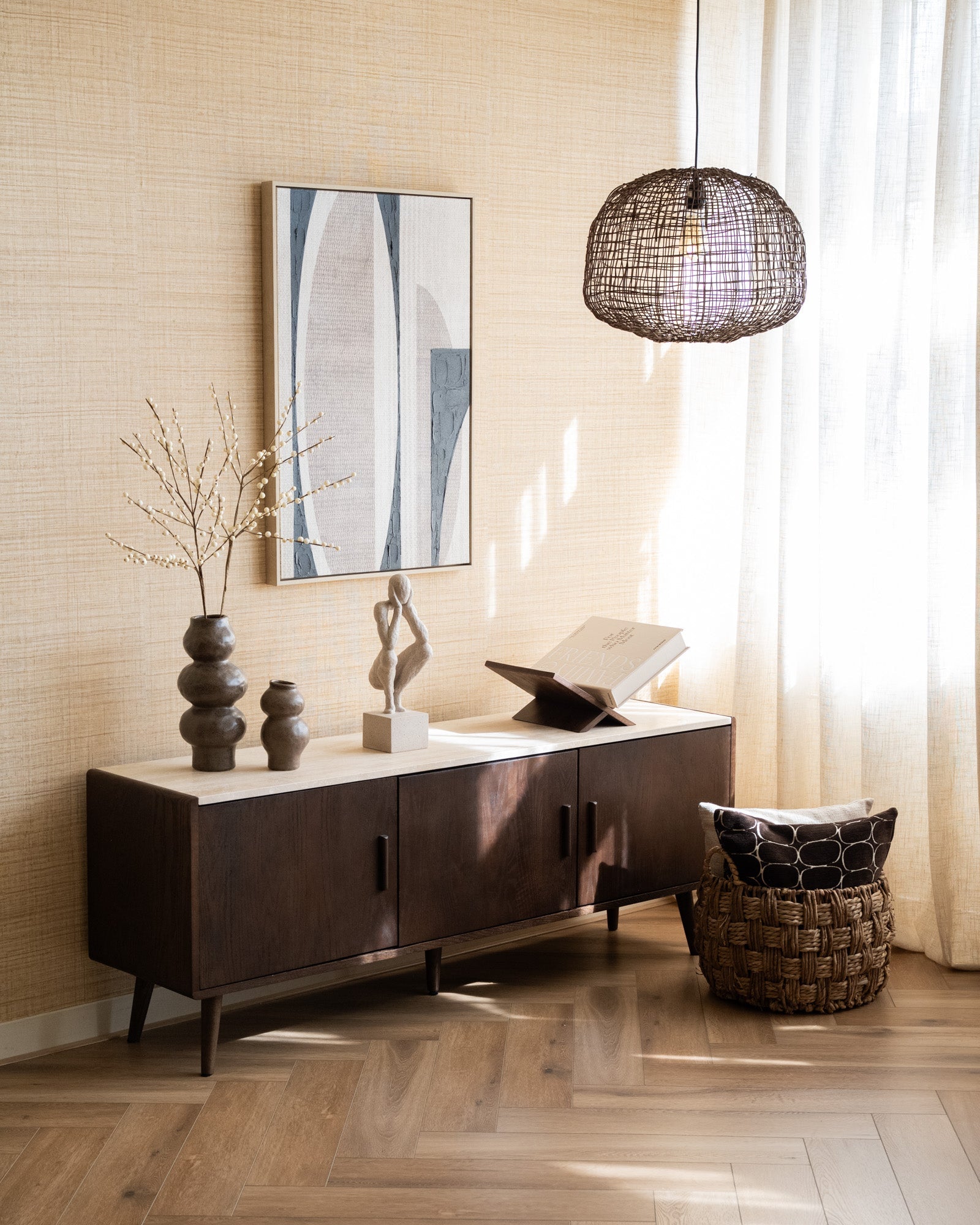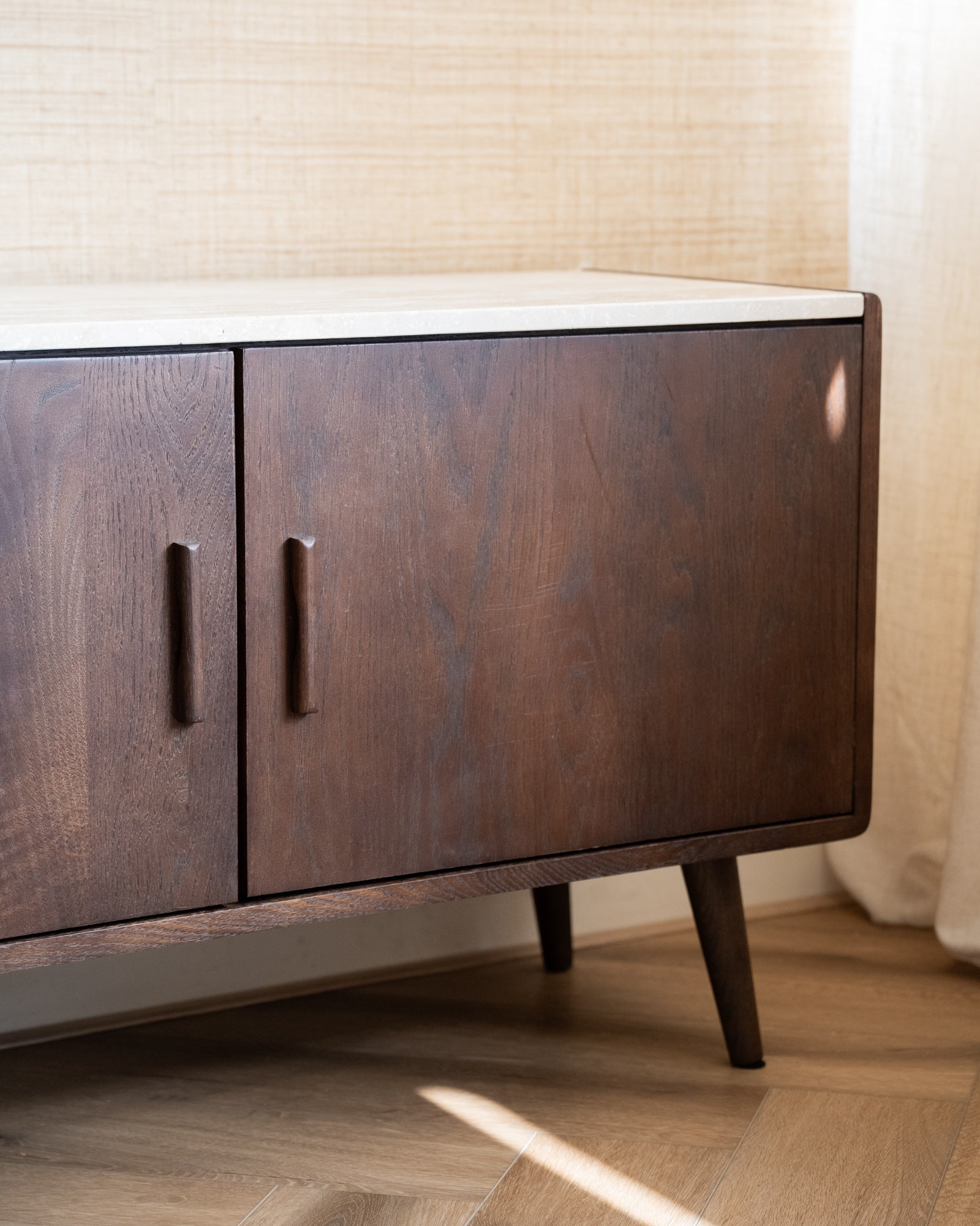 Breng warmte en karakter in je interieur met de Arda Cabinet Walnut. Dit stijlvolle dressoir combineert een diepe walnootkleur met een elegant travertin blad, wat zorgt voor een luxe vintage uitstraling. Het strakke ontwerp met conische pootjes verwijst subtiel naar de jaren 50 en maakt dit meubelstuk een echte eyecatcher. Dankzij de royale opbergruimte is het bovendien zowel praktisch als sfeervol.