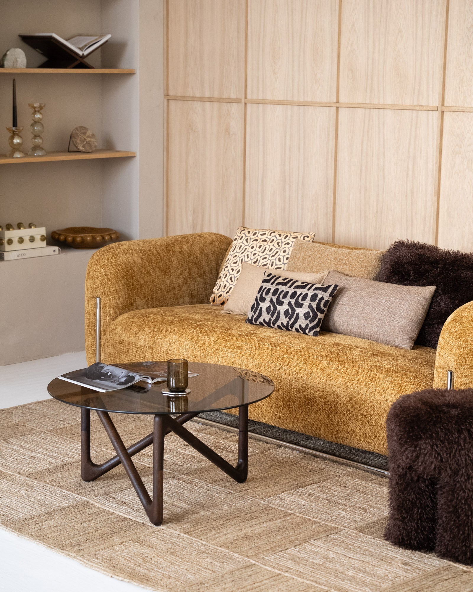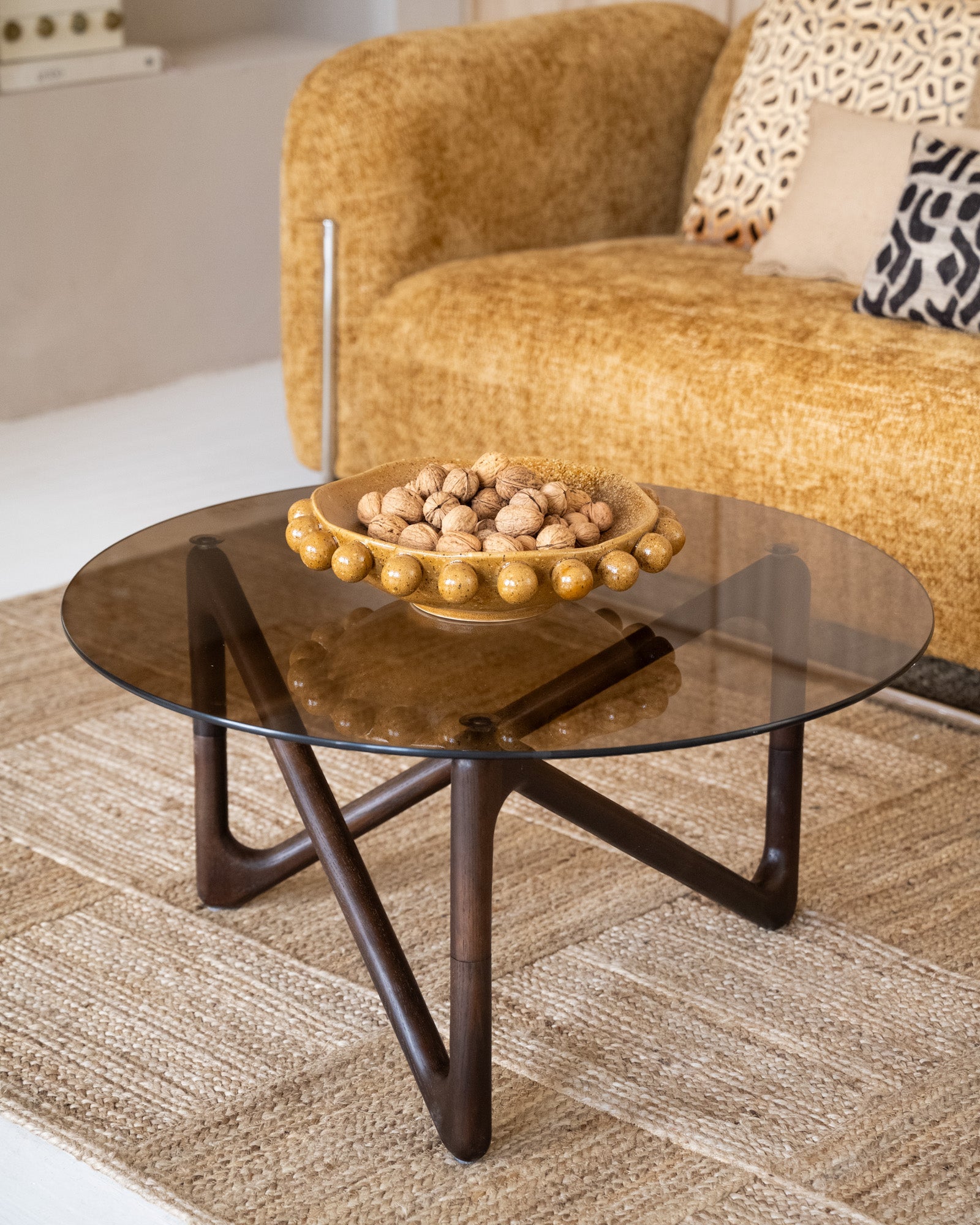 Maak een statement in je woonkamer met de Coffee Table Naia Walnut. Deze salontafel combineert een modern design met een natuurlijke esthetiek. De glazen bovenkant zorgt voor een luchtige, transparante uitstraling, terwijl het organisch gevormde onderstel warmte en een uitnodigende sfeer toevoegt aan elke ruimte. Een stijlvol middelpunt voor je woonkamer. Perfect voor een japandi interieur.