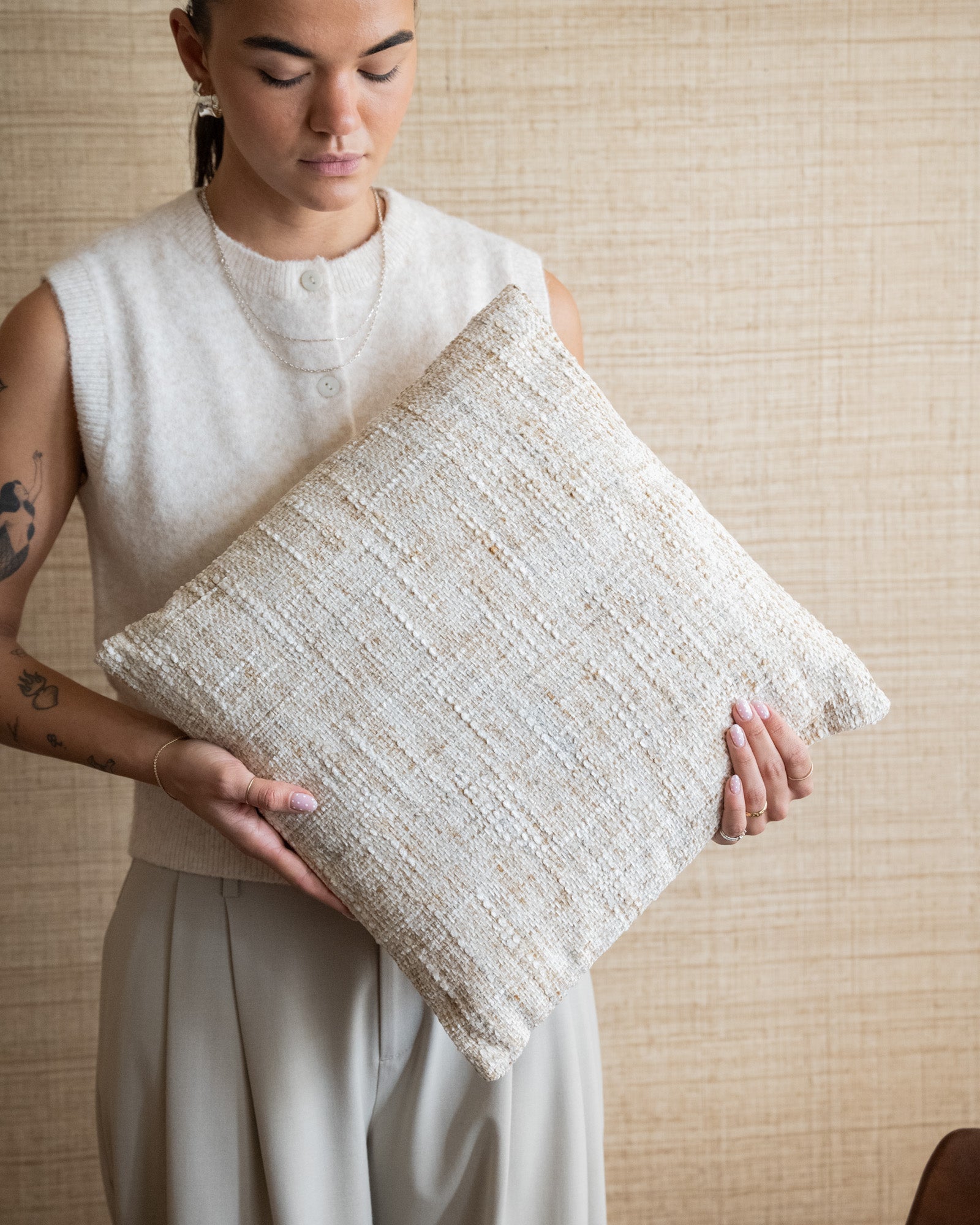 Cushion Sydney Beige is de perfecte mix van comfort en stijl! Met zijn zachte textuur en de prachtige melange van meerdere beige tinten geeft dit kussen je japandi interieur een serene, cozy vibe. De subtiele kleurencombinatie zorgt voor een natuurlijke, warme uitstraling. Dit mega mooie kussen is perfect om je bank of fauteuil een frisse, minimalistische touch te geven. Less is more!