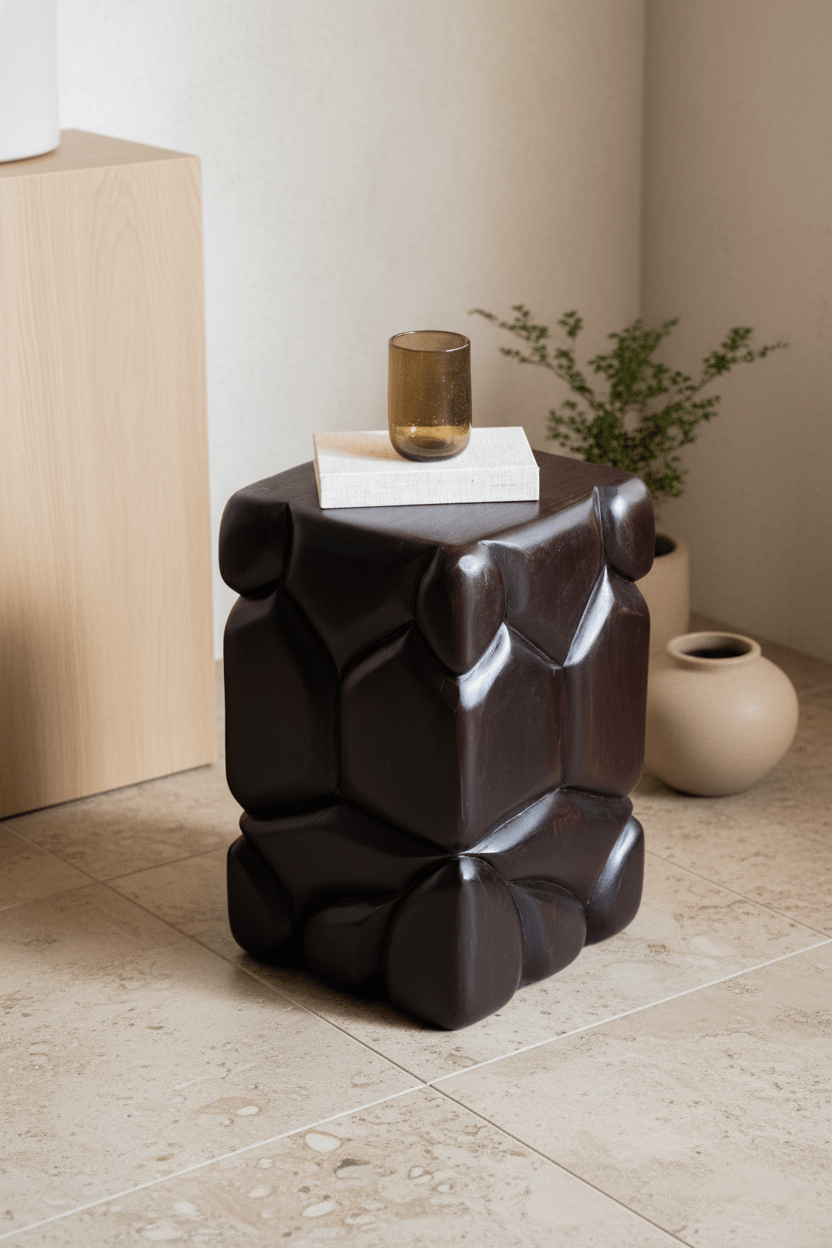 De Dutchbone Stool Brooklyn is een stoere kruk en bijzettafel in één, gemaakt van mangohout met een warme walnootkleurige finish. Het unieke design met organische vormen geeft je interieur een speels en sculpturaal karakter. Perfect naast de bank, fauteuil of als stijlvol accent in elke ruimte.