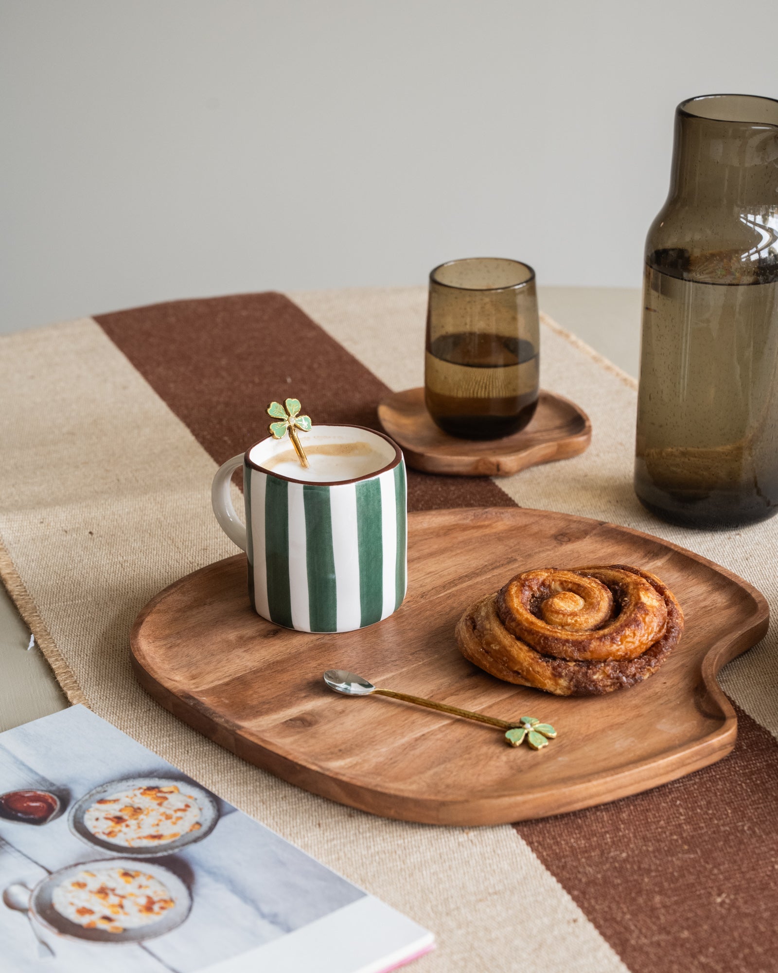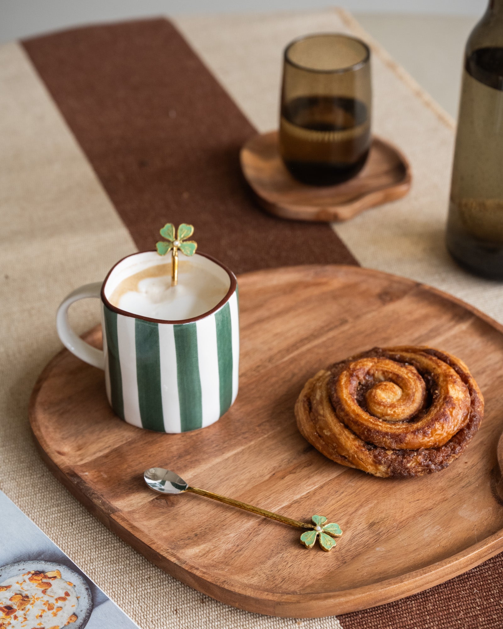 Breng een vleugje geluk naar je koffiemoment met deze set van 2 handgemaakte Lucky Clover theelepels. Met hun verfijnde gouden steel en charmante klavertje-vier design zijn ze niet alleen praktisch, maar ook een stijlvolle toevoeging aan je tafel. Perfect voor thee, koffie of een feestelijk dessertmoment. Deze set lepels komt op een mooi karton als cadeauverpakking, superleuk om te geven of te krijgen