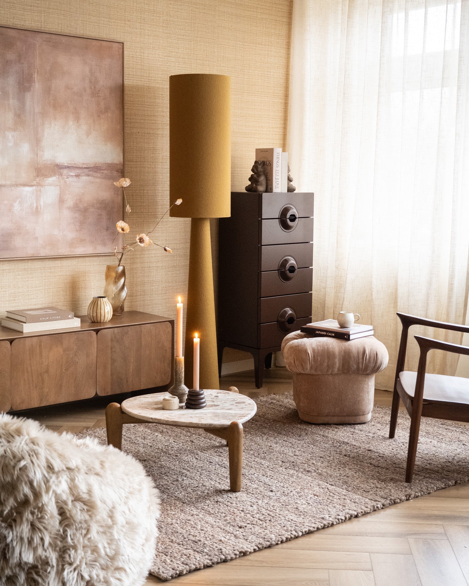 De Loft vloerlamp in warme musterd kleur is een echte sfeermaker voor elk interieur. De zachte bouclé stof geeft een warme uitstraling en past perfect in zowel moderne als vintage woonstijlen. Dankzij het minimalistische design en de dubbele lichtbron (boven én onder) creëer je moeiteloos een gezellige ambiance. Een stijlvolle eyecatcher met karakter!