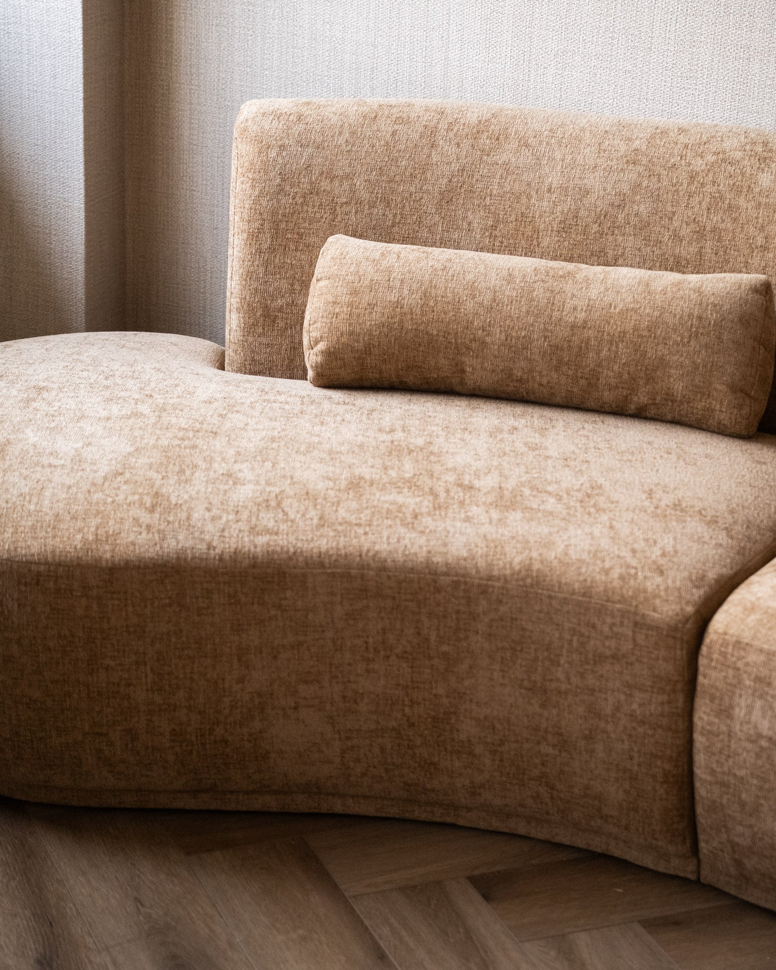 De Sofa Batavier Brown is een stijlvolle, halfronde 4-zits bank met een luxe melange-look en warme bruine tint. Dankzij het royale formaat en de actieve, comfortabele zit is dit de perfecte bank om heerlijk te loungen met familie of gasten. De stevige, zachte geweven stof geeft een moderne en chique uitstraling aan jouw interieur. Met de Batavier voeg je moeiteloos design, comfort en ruimte toe aan je woonkamer.