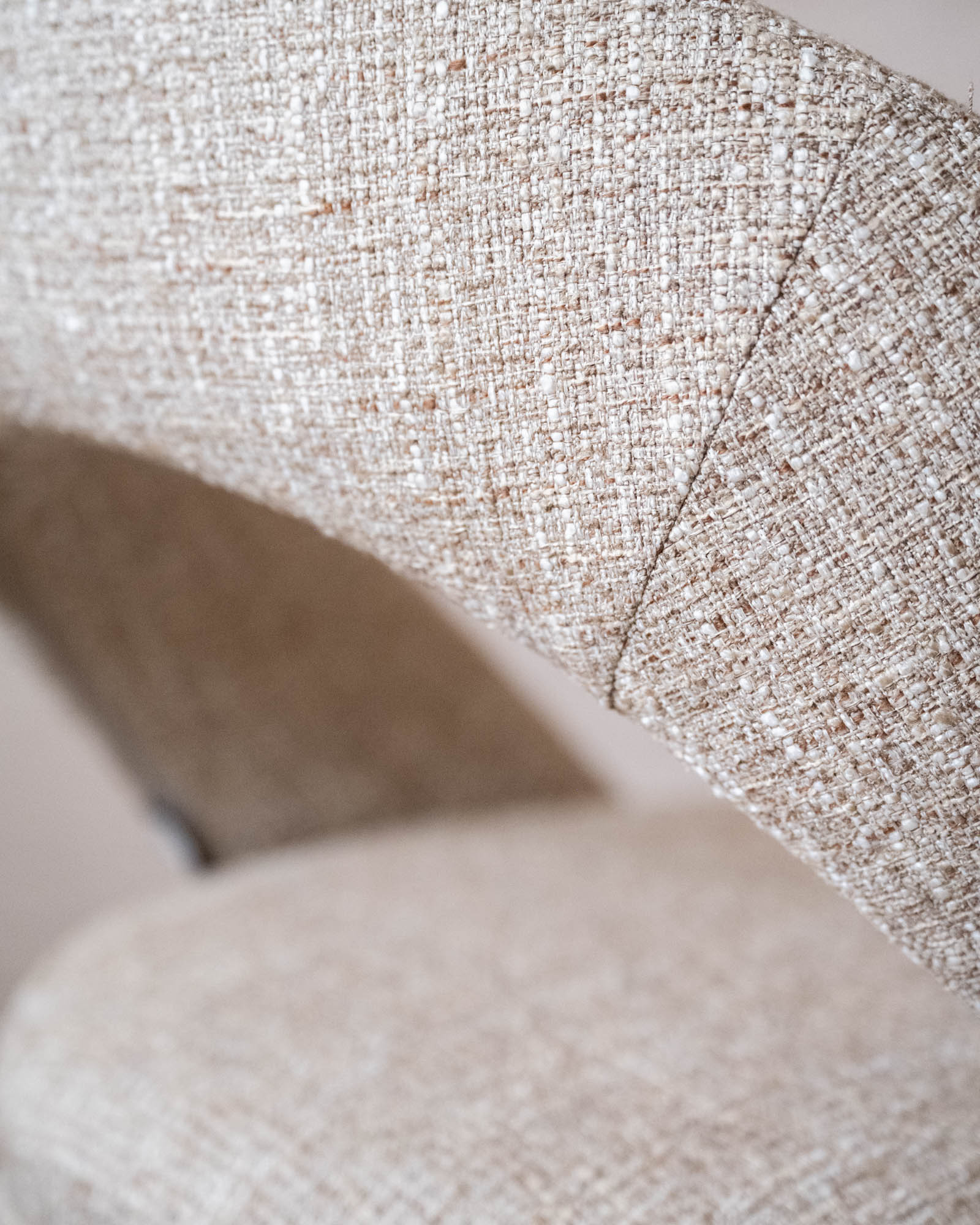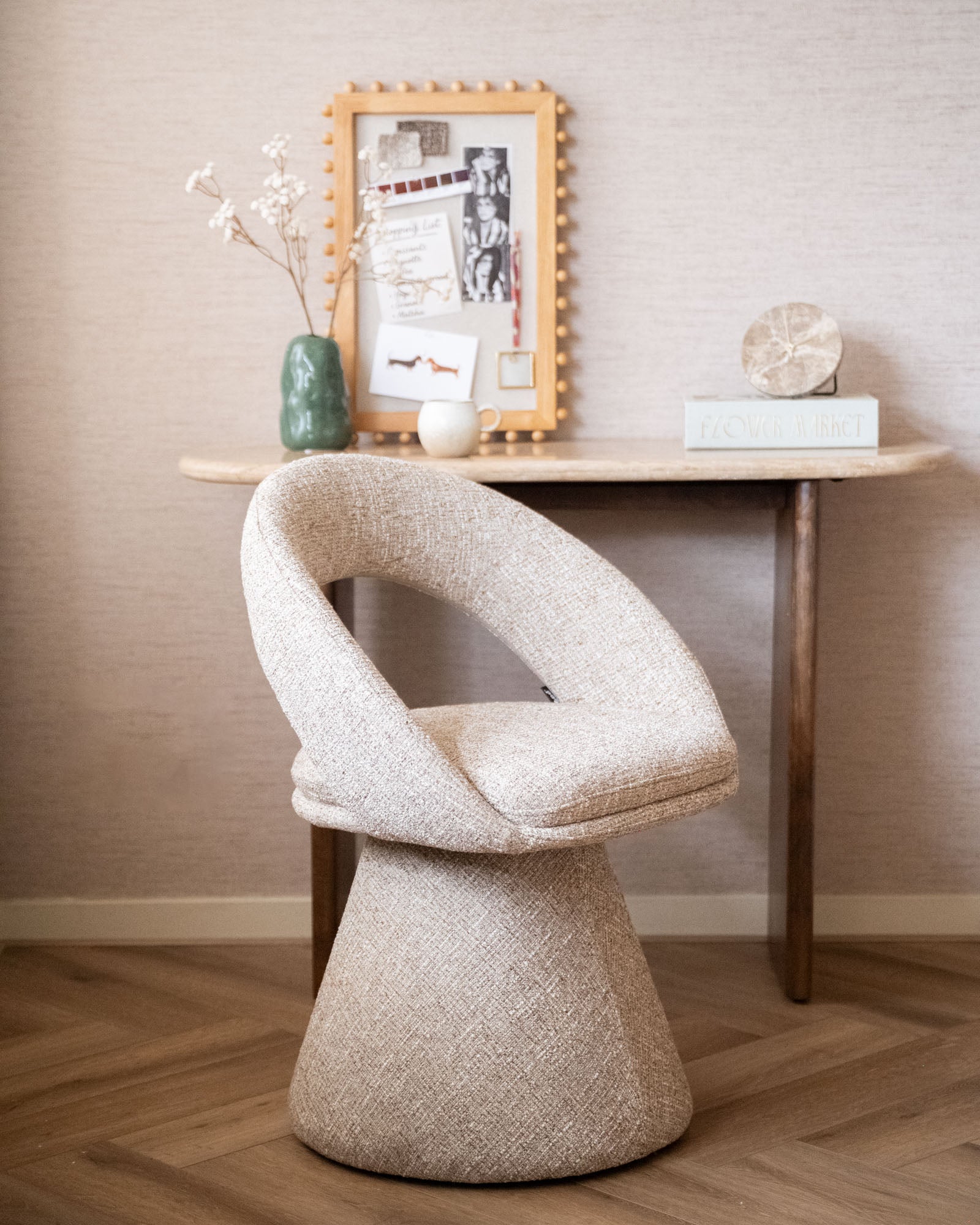 De Swivel Dining Chair Natural Melange is een comfortabele draaistoel met een zacht gestoffeerd design en een warme, natuurlijke uitstraling. Dankzij de draaipoot is de stoel perfect voor zowel aan de eettafel als aan een bureau. Een stijlvolle en veelzijdige stoel voor dagelijks gebruik.