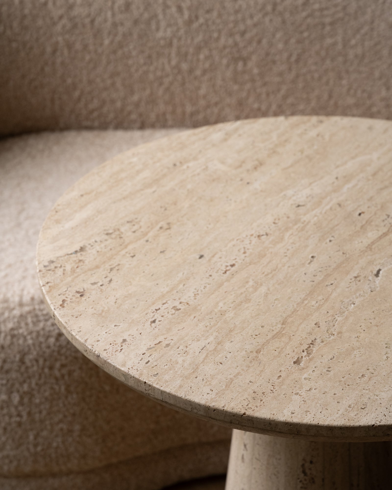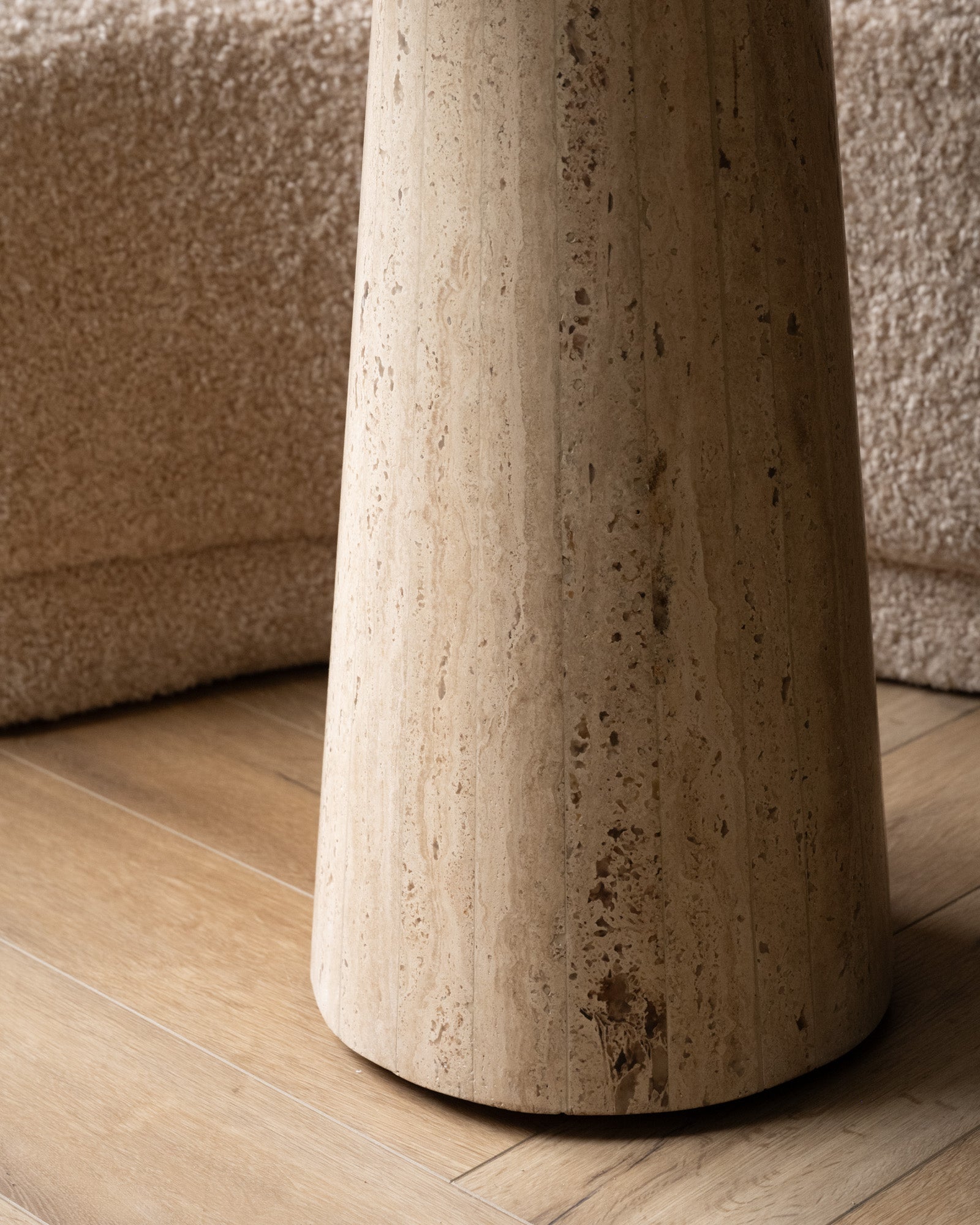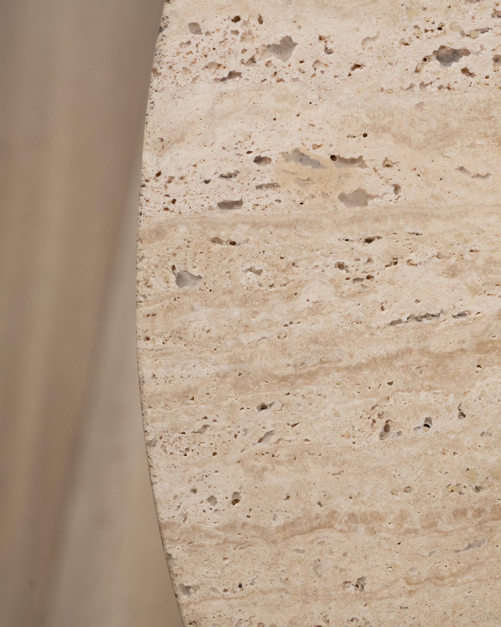 Deze prachtige bistro tafel bestaat volledig uit massief travertin en daarom een echte eye-catcher!
