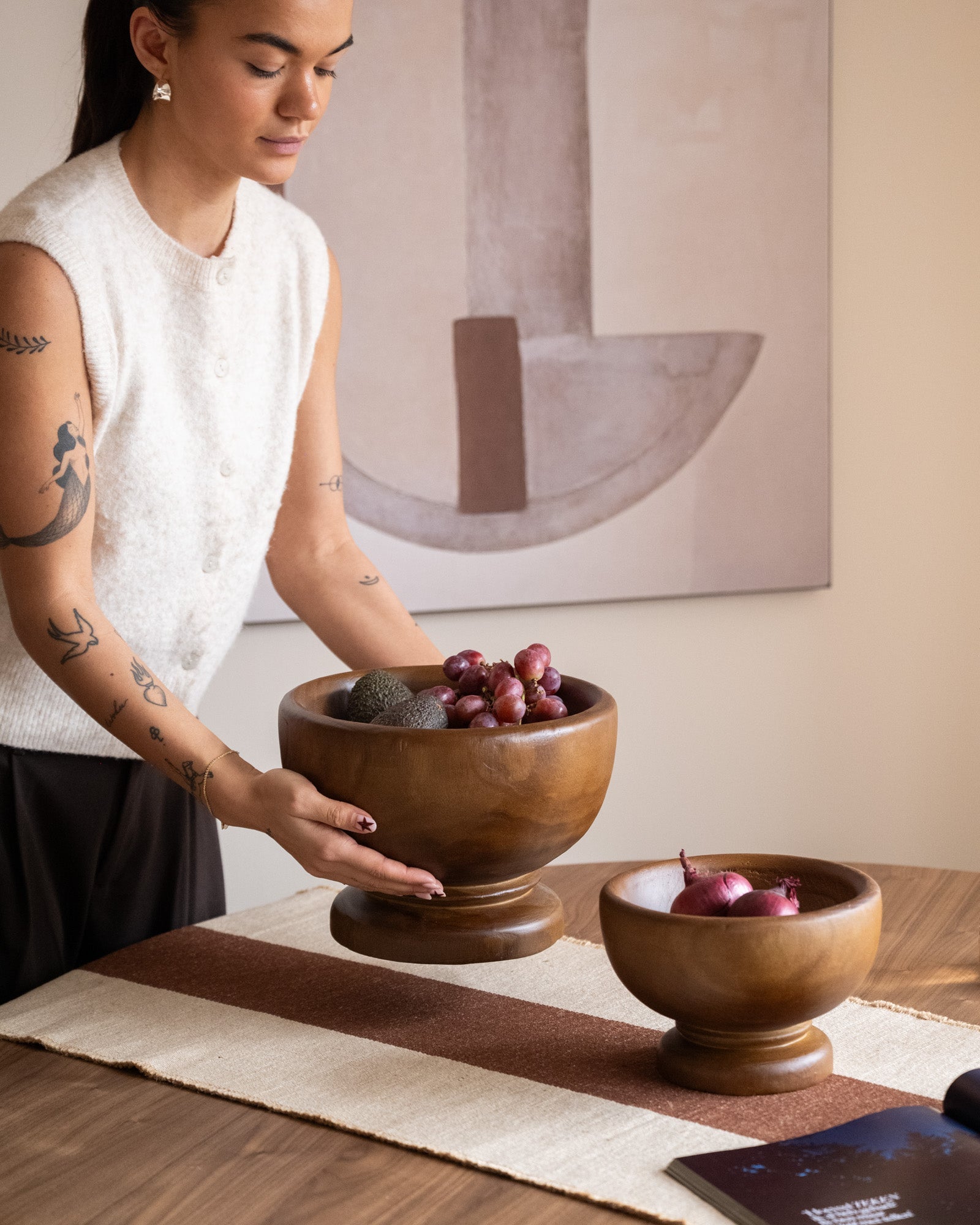 De Deco Bowl Madera Brown is een warme, houten schaal op voet die direct sfeer toevoegt aan je interieur. Perfect als fruitschaal, voor kleine accessoires of als decoratieve eyecatcher op tafel of dressoir.