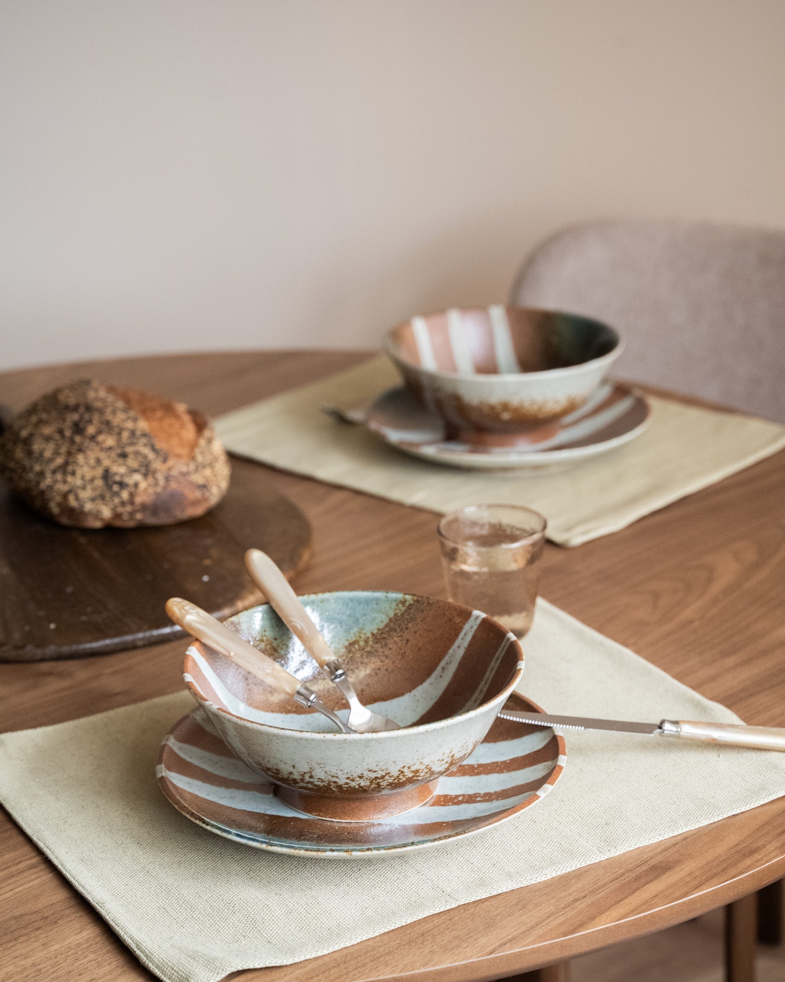 Deze stijlvolle placemat is gemaakt van een mix van katoen en jute en heeft een stevige, geweven structuur met een zachte touch. De subtiele groene tint zorgt voor een frisse, rustige basis die perfect combineert met servies in aardetinten. Ideaal voor gezellige diners, borrelmomenten of een mooi gedekte tafel in het dagelijks leven.