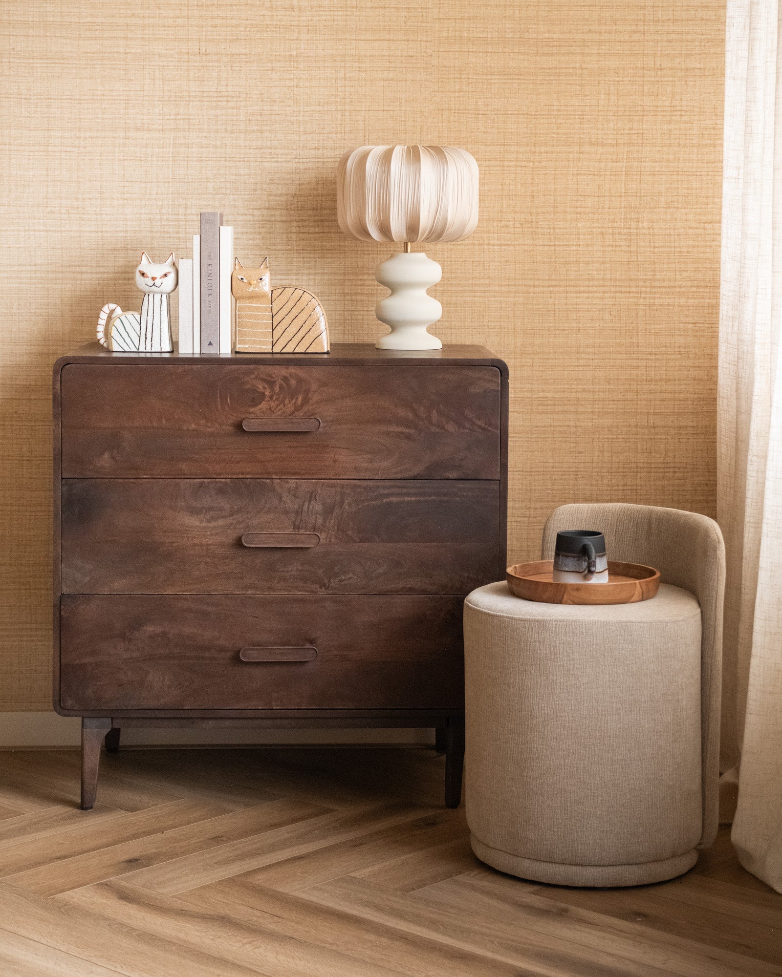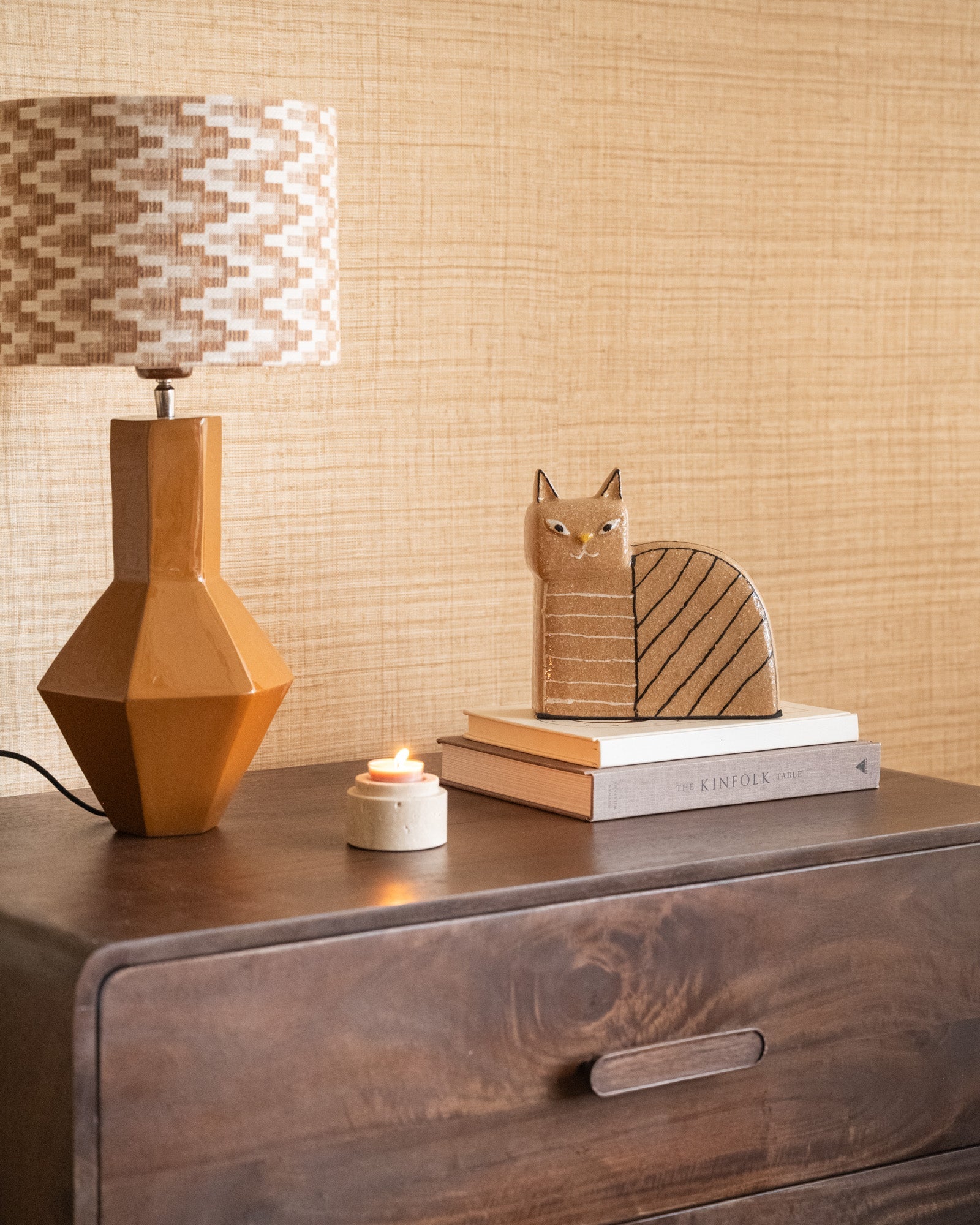 De Ornament Cat Stoneware brengt speelsheid en karakter in je interieur. Gemaakt van aardewerk met een charmant, grafisch design. Combineer beide varianten voor een gezellig duo dat perfect samen als boekensteunen werkt of als stijlvol accent op je kast of dressoir.