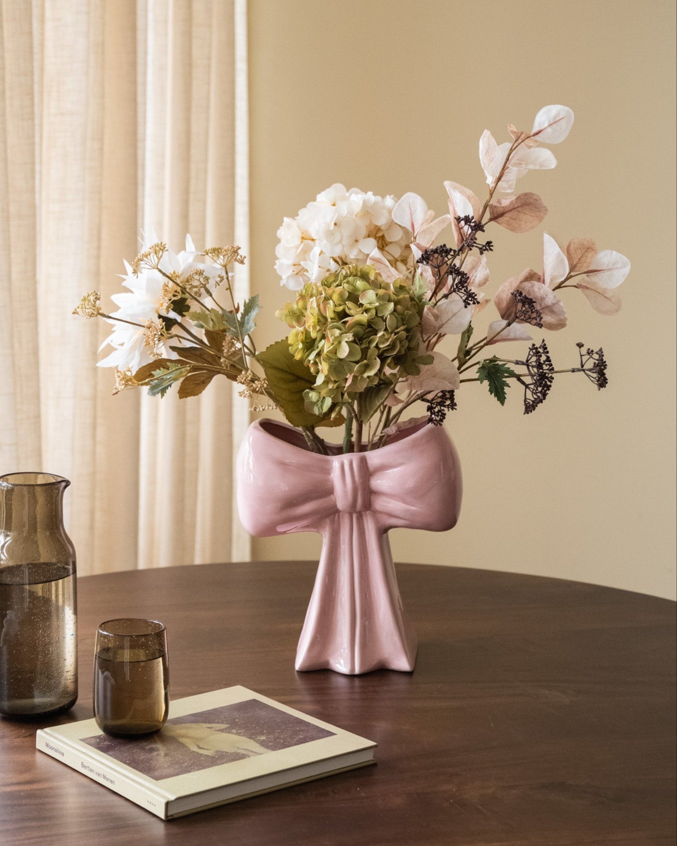 Voeg een speels én elegant accent toe aan je interieur met de Deco Vase Bow Pink. De zachte roze tint en unieke strikvorm maken deze vaas tot een echte eyecatcher. Perfect voor droogbloemen, takken of gewoon als decoratief object. Een stijlvolle mix van fun en design die elke ruimte een vrolijke touch geeft.