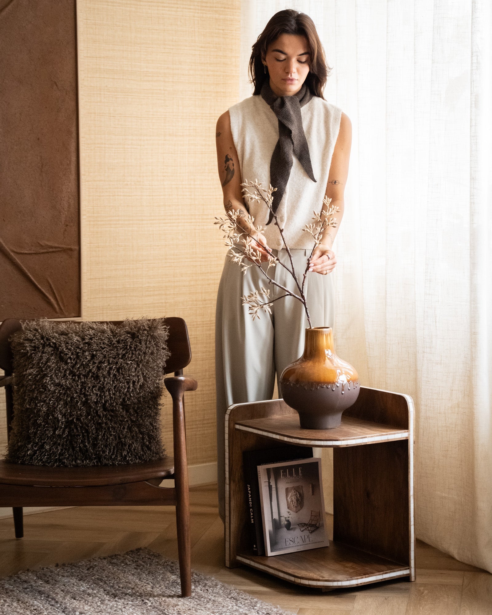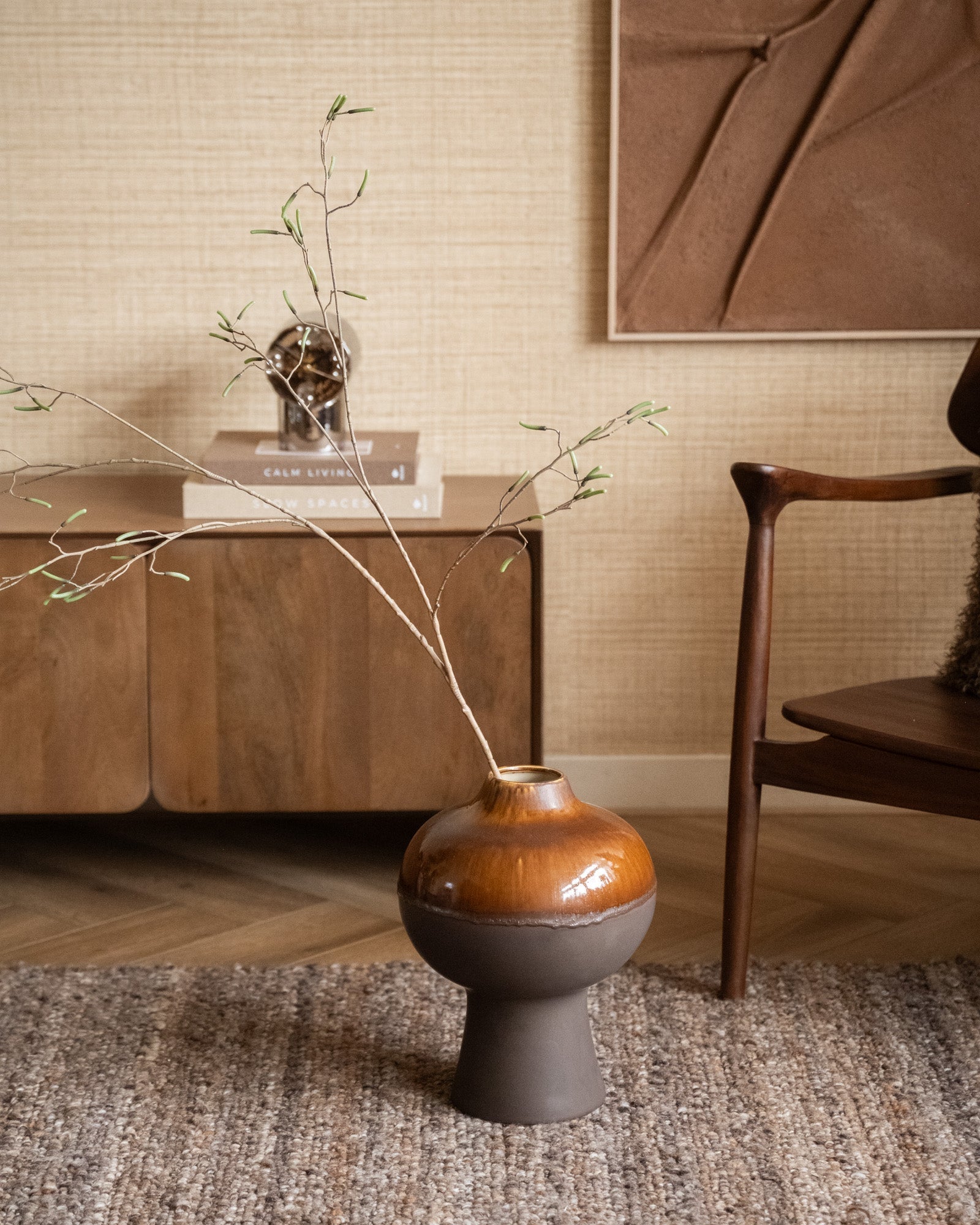 Deco Vase Jive Drip Brown is een stijlvolle keramieken vaas met een uniek drip-glazuur in warme bruintinten. De organische vorm en het matte-hoogglans contrast geven deze vaas een rustige, natuurlijke uitstraling. Mooi met een paar takken, droogbloemen of als decoratief object, en extra leuk om de Medium en Large samen te combineren voor een speels geheel.