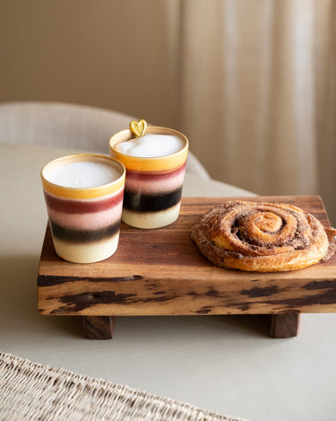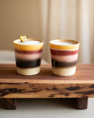 Geniet van je koffie in stijl met deze retro-chique mok uit de iconische 70s-collectie van HKLIVING. De warme, aardse tinten en organische afwerking doen denken aan een zwoele zonsondergang aan de kust. Perfect om je dag met een relaxed gevoel te beginnen!