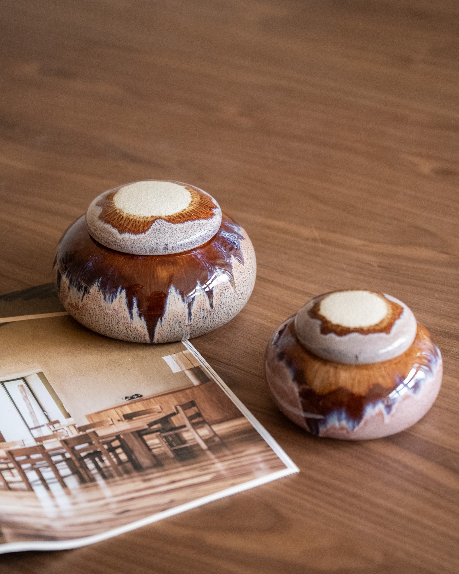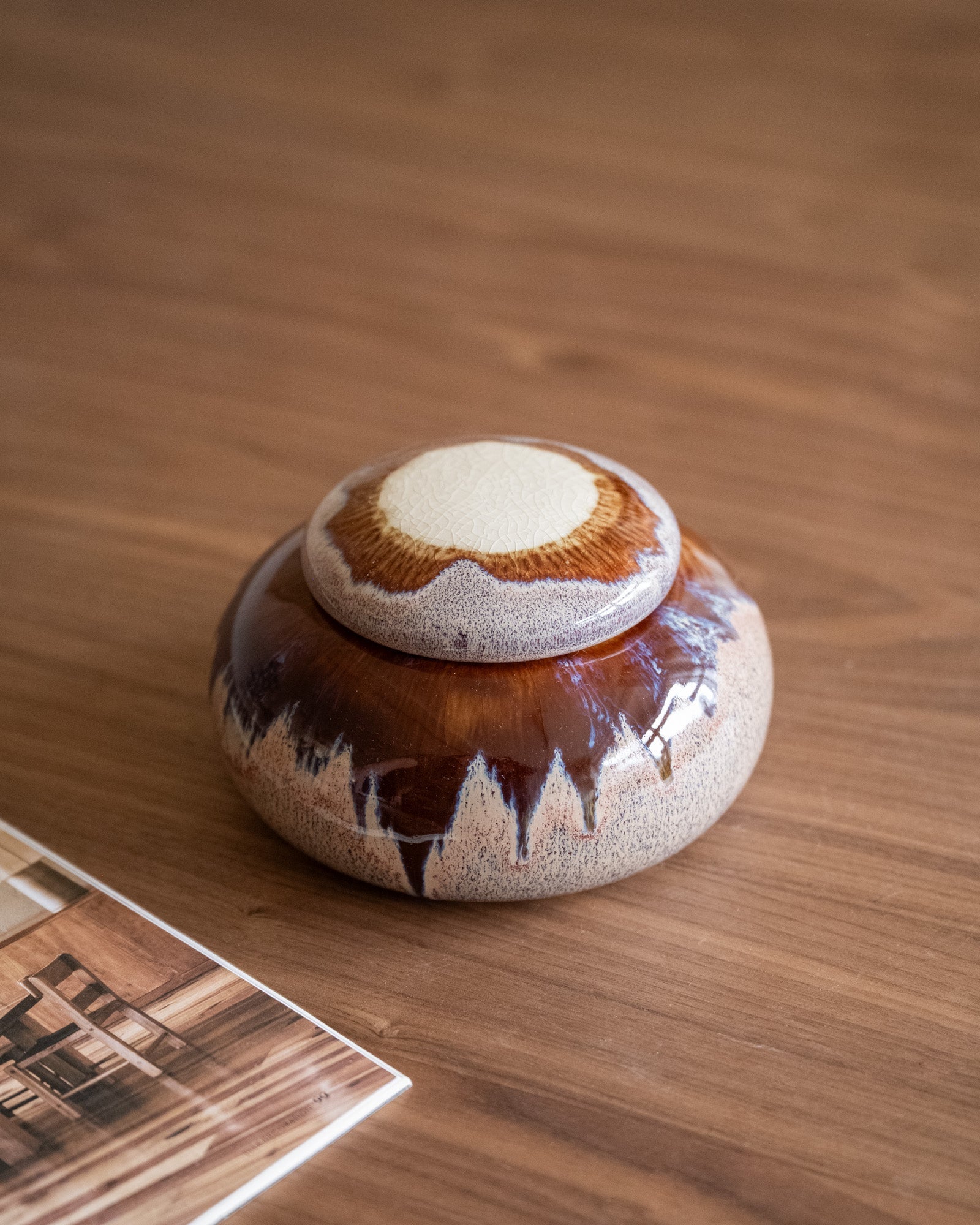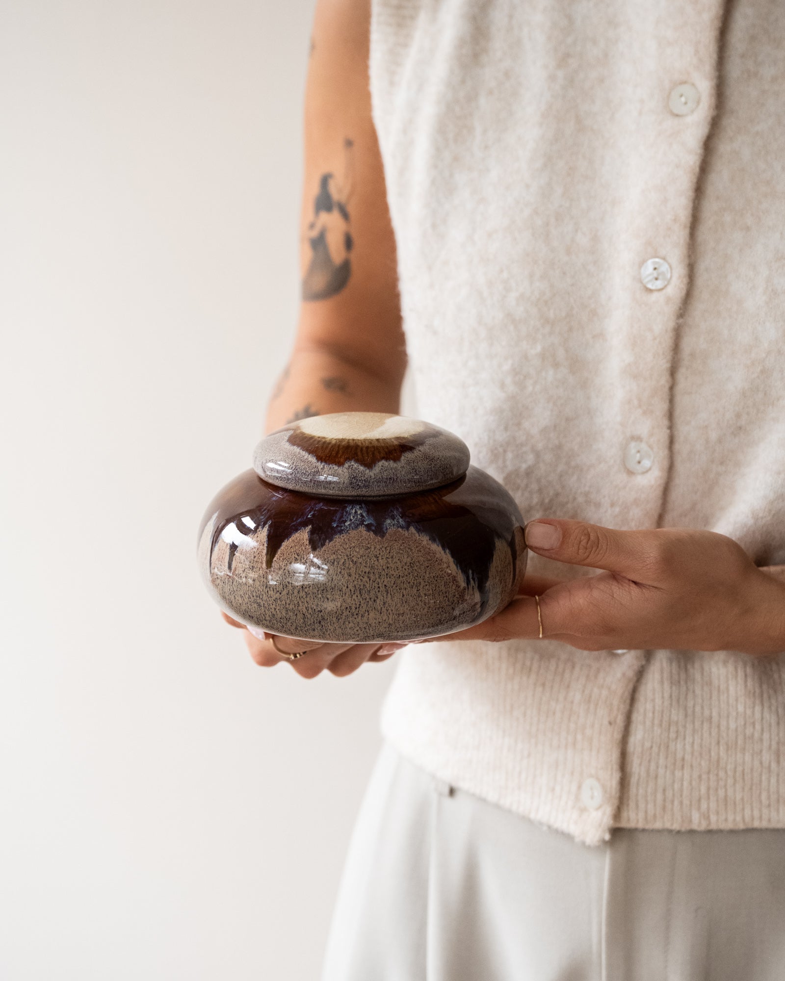 De Storage Jar Retro Ceramic Brown is een echte eyecatcher met een nostalgische twist. De ronde vorm, glanzende glazuurlaag en warme bruin- en crèmetinten geven deze keramische opbergpot een retro uitstraling die perfect past in de keuken, woonkamer én badkamer. Mooi als decoratief object op een dressoir, salontafel of open plank, maar ook leuk om kleine items in op te bergen.