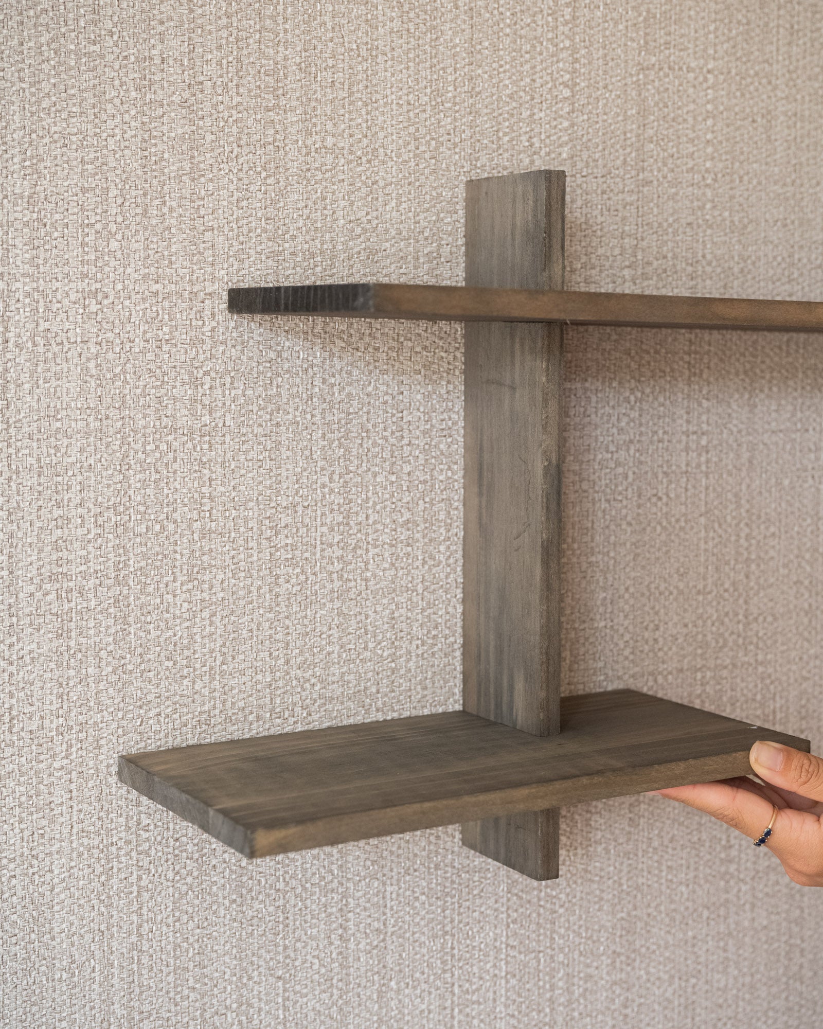 Deze minimalistische Wall Shelf Ovada met asymmetrische planken is perfect om je favoriete items op een stijlvolle manier te tonen.