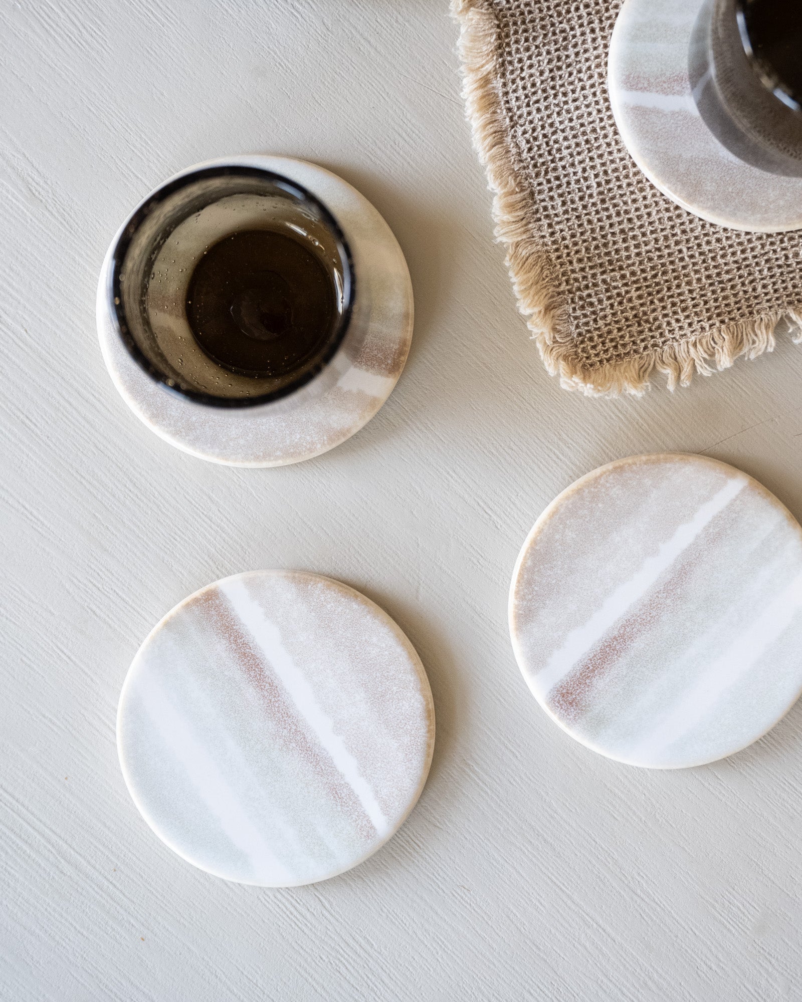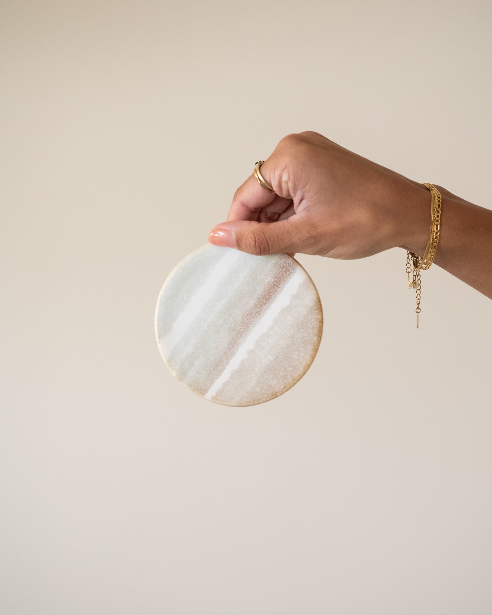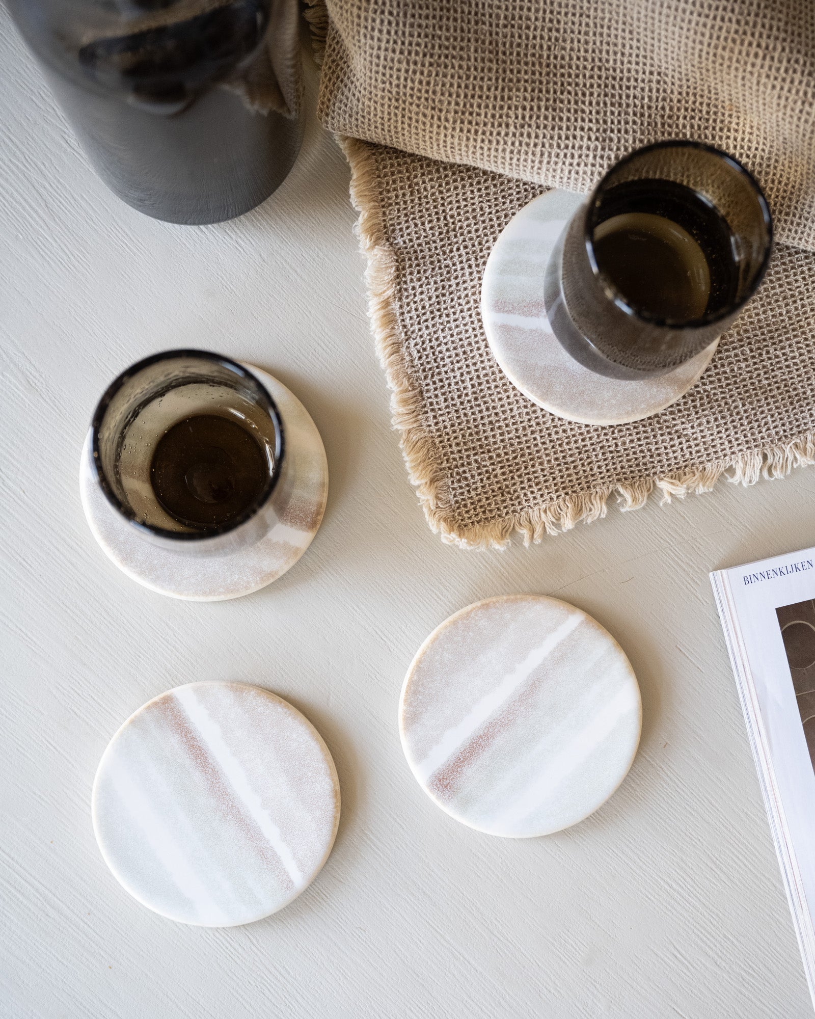 De Sofie Marble Beige onderzetter combineert elegantie en functionaliteit in één. Met zijn zachte marmeren patroon in warme beige- en zandtinten voegt hij een natuurlijke, luxe touch toe aan je interieur. Perfect om glazen, mokken of kaarsen op te plaatsen en je tafel te beschermen tegen kringen en vlekken. Een subtiel detail met groots effect!