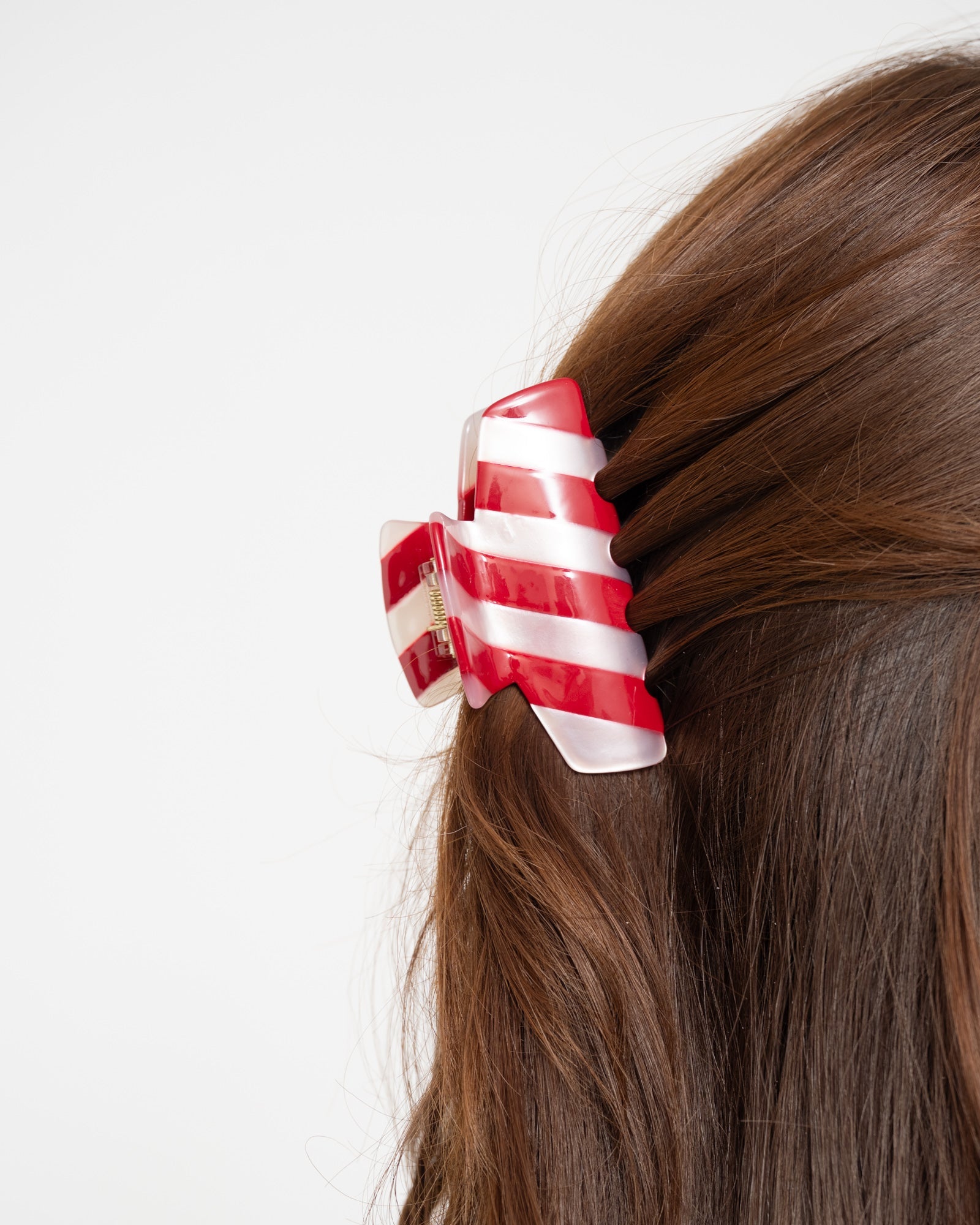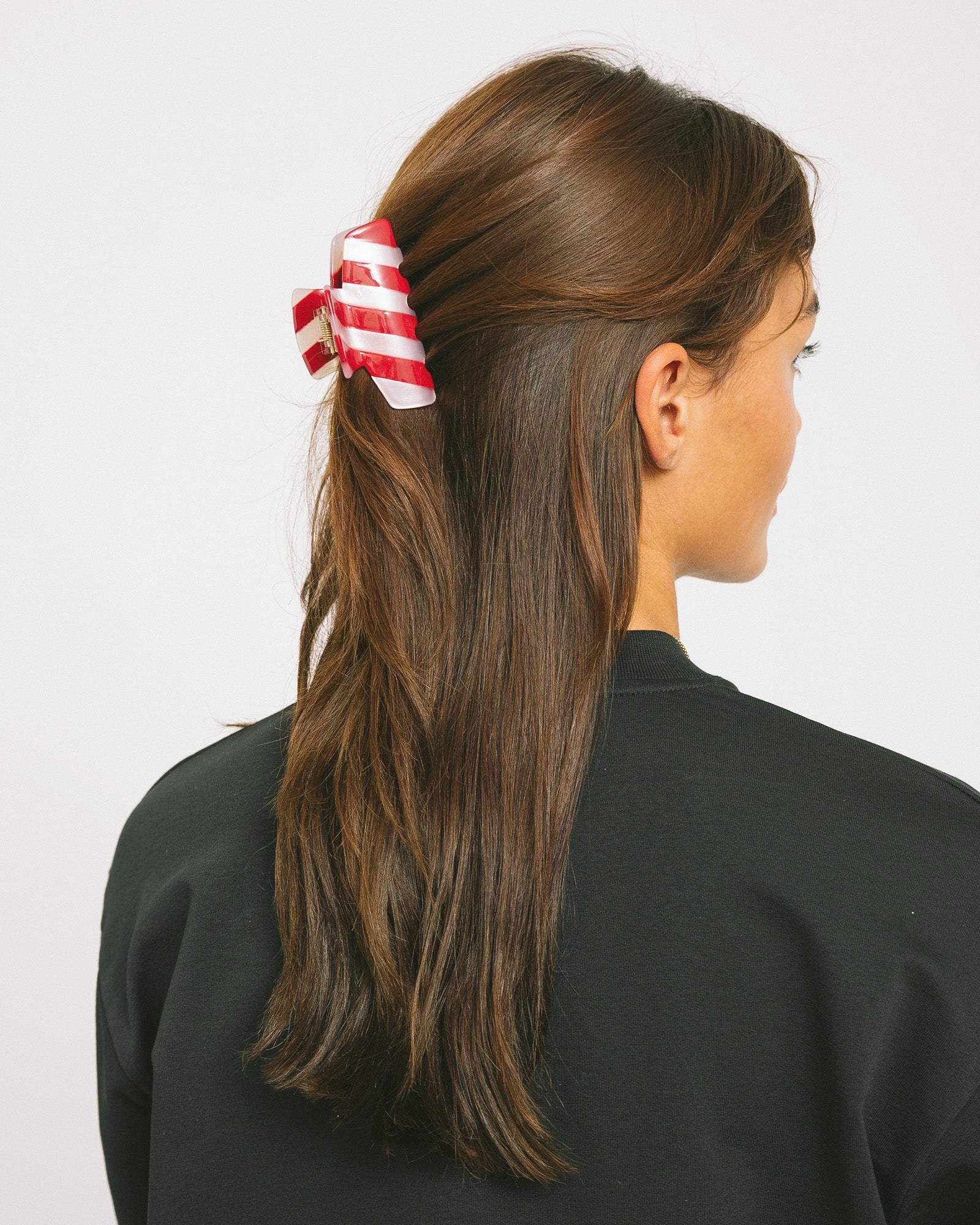 Deze clip houdt je haar stijlvol in toom met haar rode strepen en stevige grip.