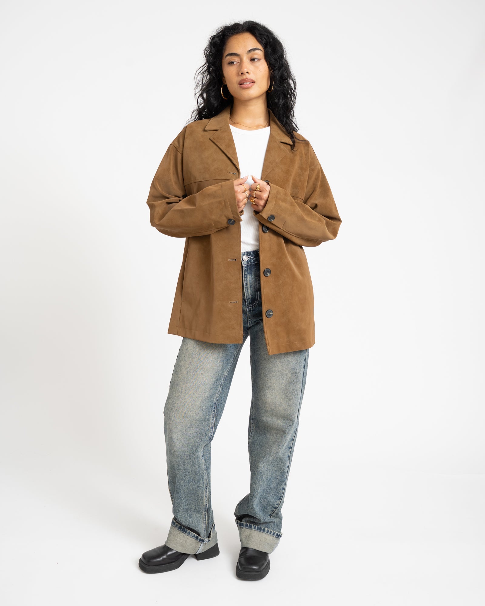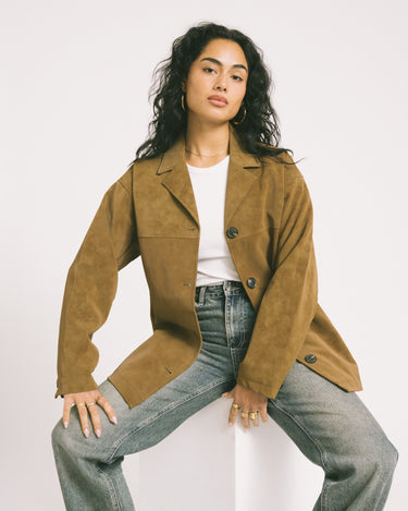 De Lola Mid Jacket is een tijdloze essential met een moderne, relaxte fit. De warme dachshund-kleur en zachte feel maken dit jasje perfect om moeiteloos te layeren, van casual denim looks tot meer geklede outfits.
