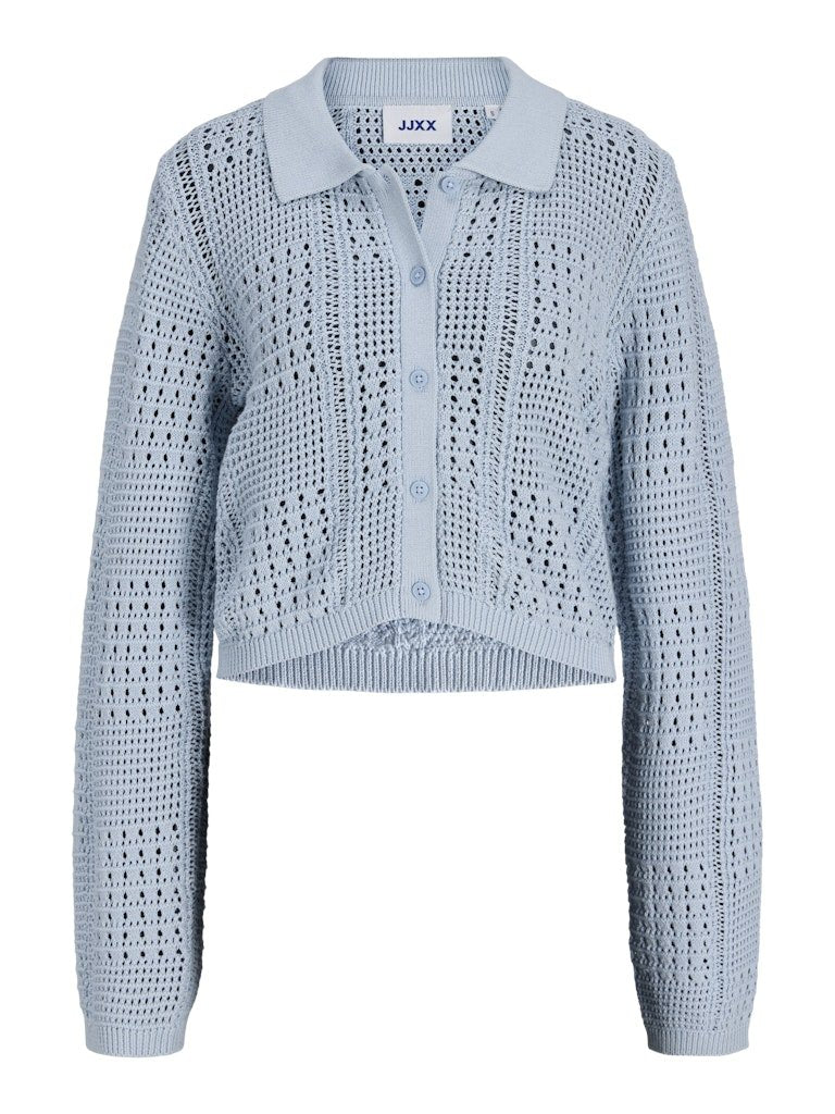 Fijngebreid vest met een luchtige structuur en een vrouwelijke uitstraling. De kraag en knoopsluiting geven het vest een stijlvolle en casual look, perfect om overal overheen te dragen.