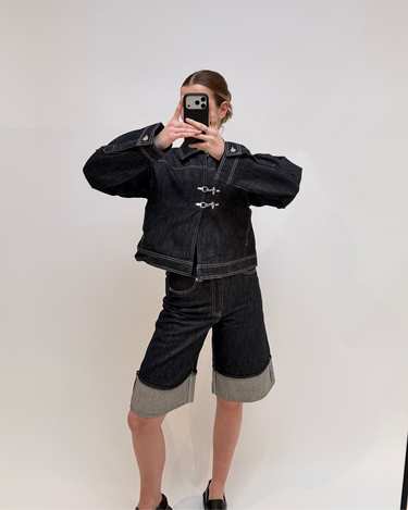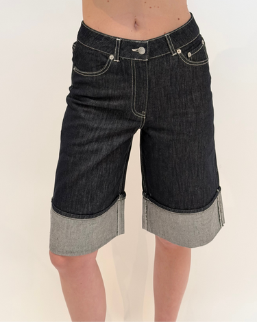 Deze wijde short is de perfecte basis voor een stijlvolle en comfortabele look. Het contrasterende witte stiksel geeft de short een moderne en speelse uitstraling. Combineer met het matchende jasje voor een complete set, of draag ‘m los voor een casual outfit met een trendy twist.
