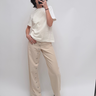 Let op: Broek valt wat kleiner. Voor een oversized fit, bestel een maatje groter. Model is 1.73 en draagt maat S/34.