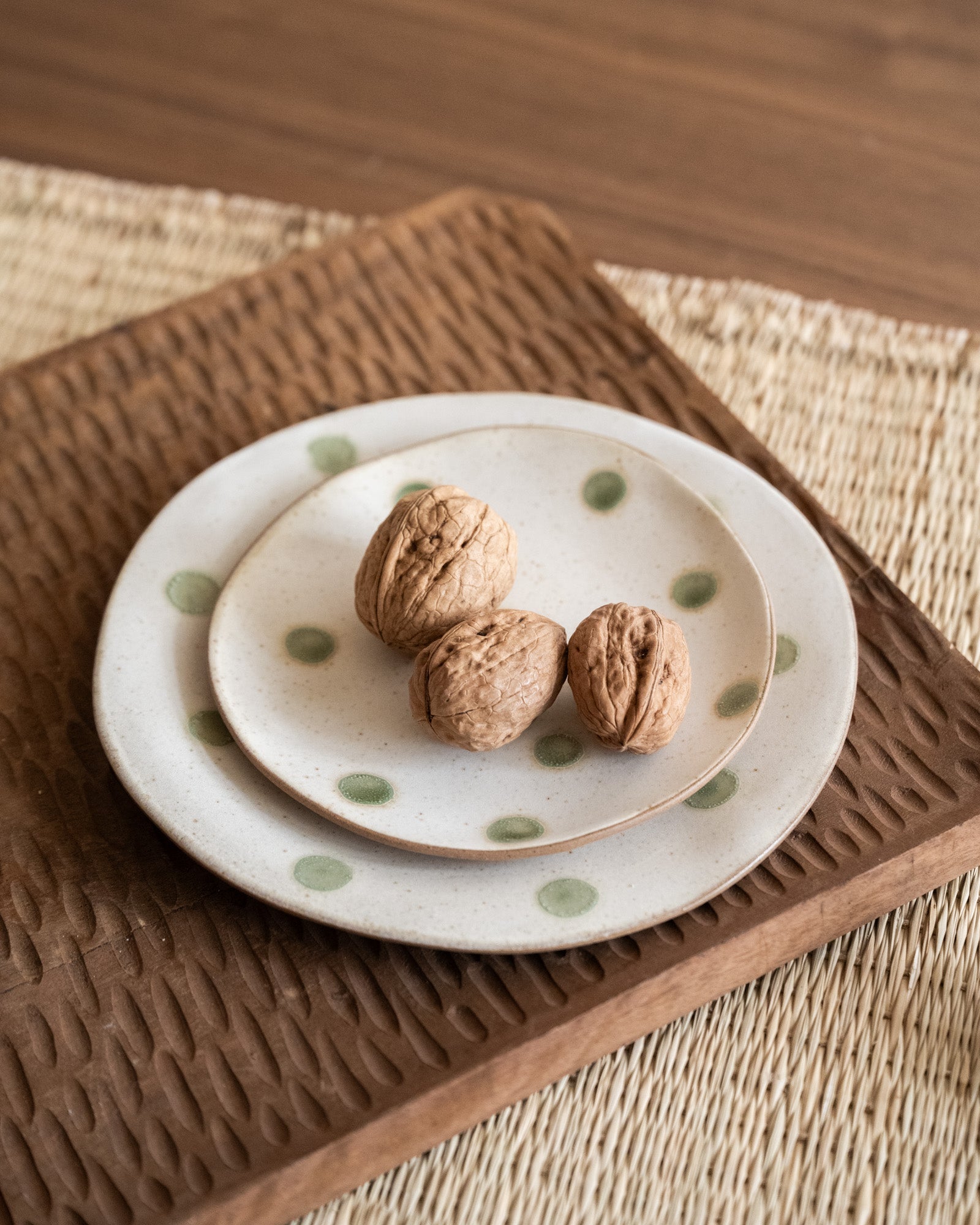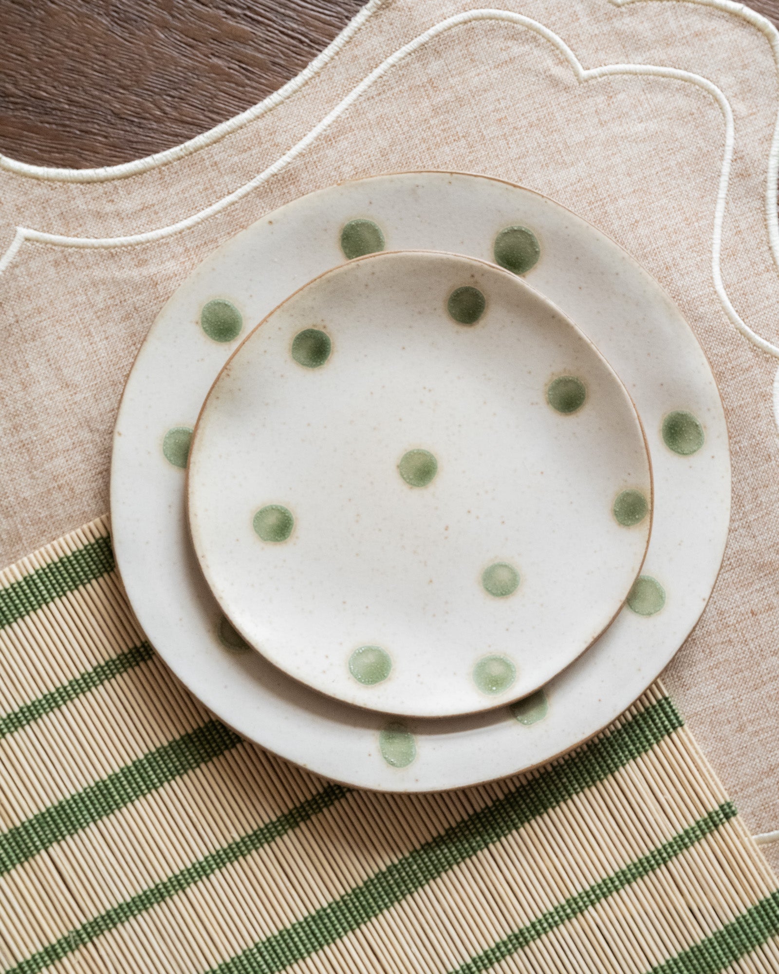 Cake Plate Polka Dots Green