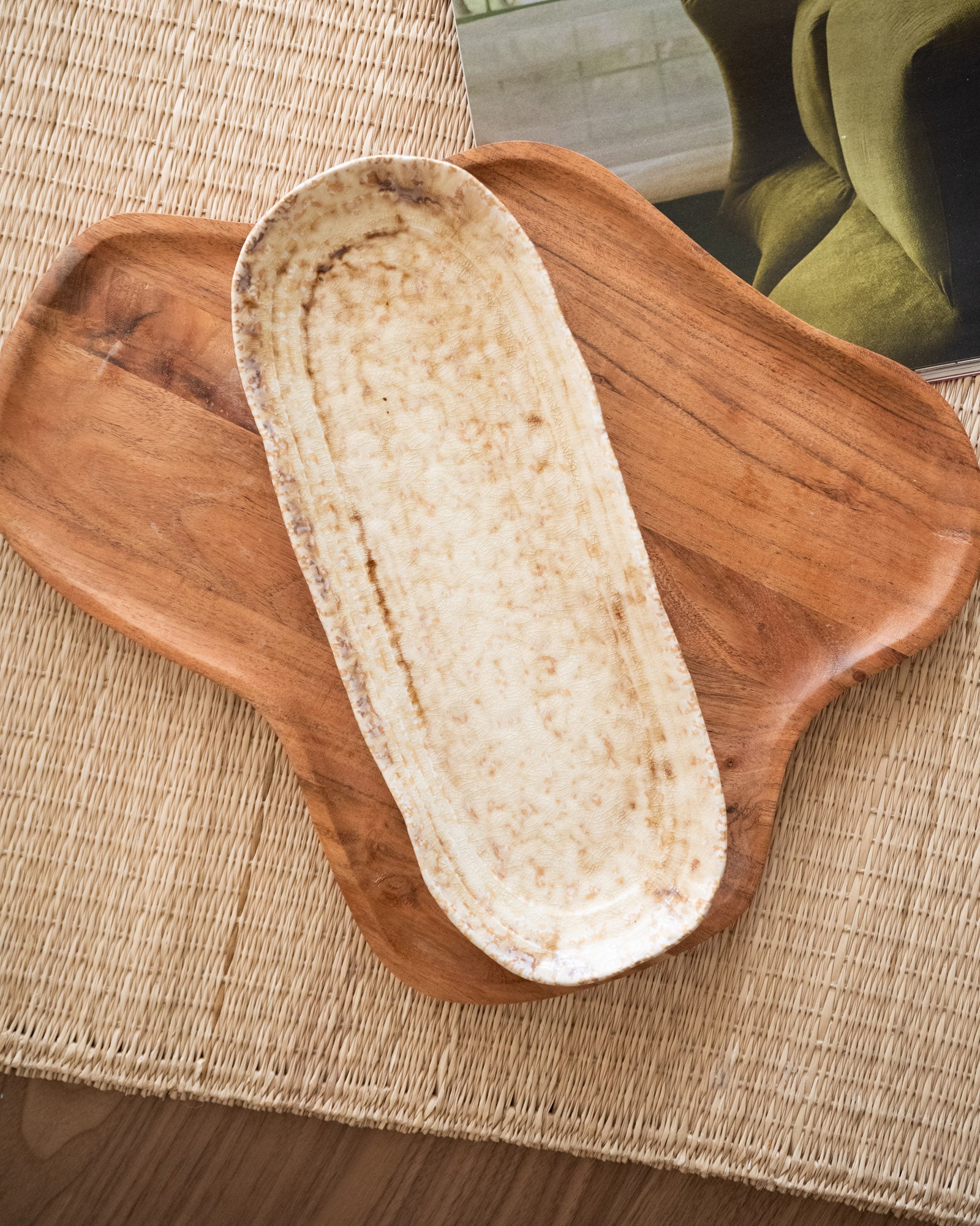 Serving Plate Mila Beige is een elegante serveerschaal van steengoed met een zachte beige tint en een subtiel gemêleerde afwerking. De organische vorm en handgemaakte look geven elk item een unieke uitstraling. Perfect om hapjes, brood, cake of kleine gerechten stijlvol te serveren, maar ook mooi als decoratief object op tafel of dressoir.