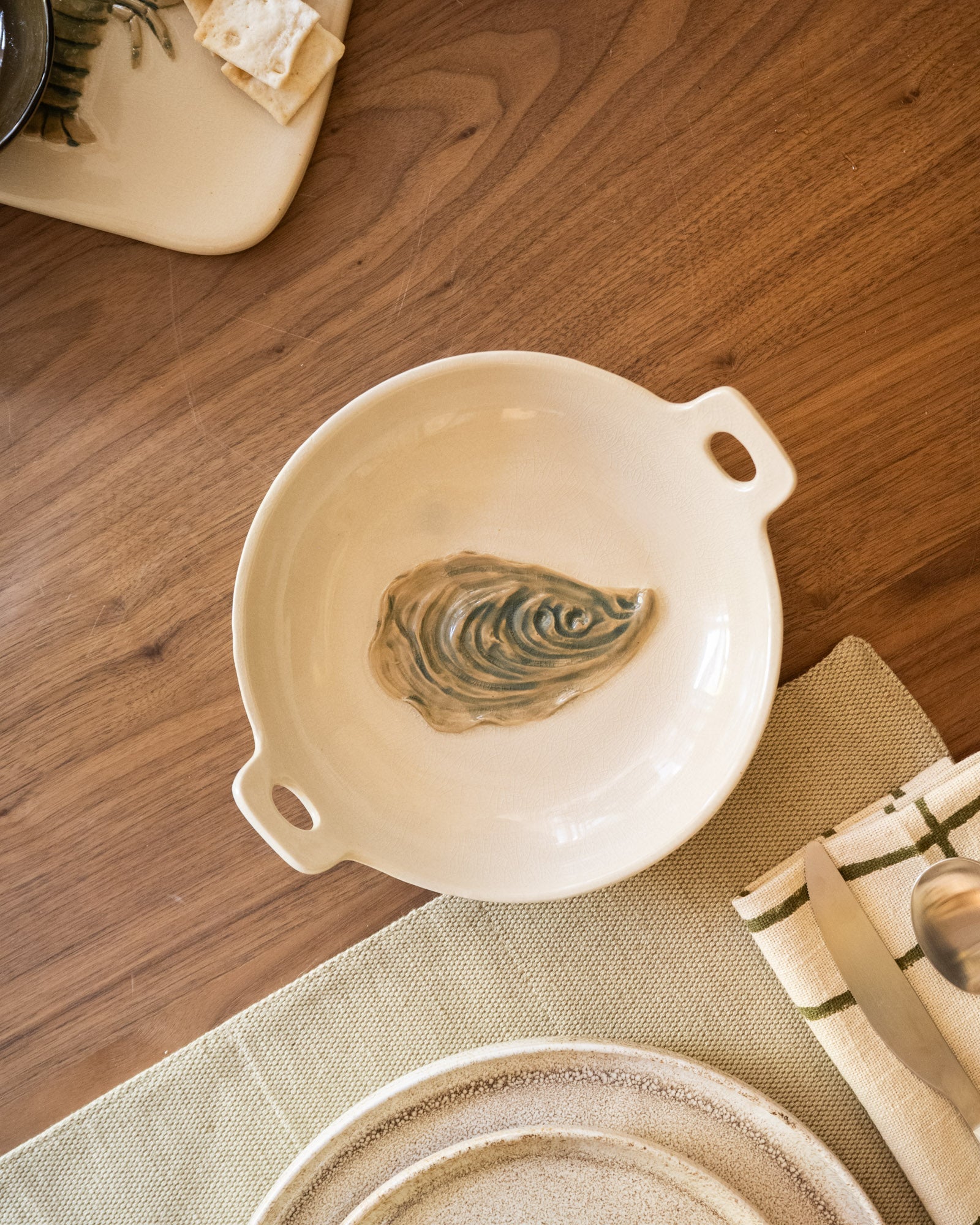 Serveer je favoriete gerechten in stijl met de Serving Bowl Oyster Ceramic. Deze keramische serveerschaal met subtiele oesterillustratie in zachte, natuurlijke tinten geeft je tafel een rustige en mediterrane uitstraling. Dankzij het formaat is de schaal perfect voor salades, pasta’s, tapas of kleine bijgerechten. De handige oortjes maken serveren extra makkelijk, terwijl het tijdloze design moeiteloos combineert met ander servies. Ideaal voor een gezellige borrel, diner of zomerse lunch.