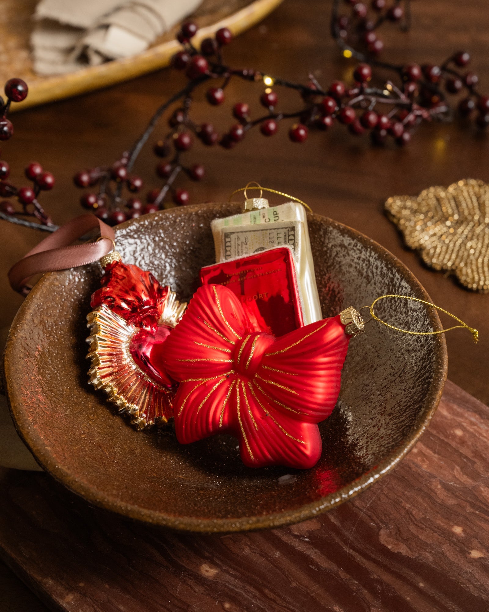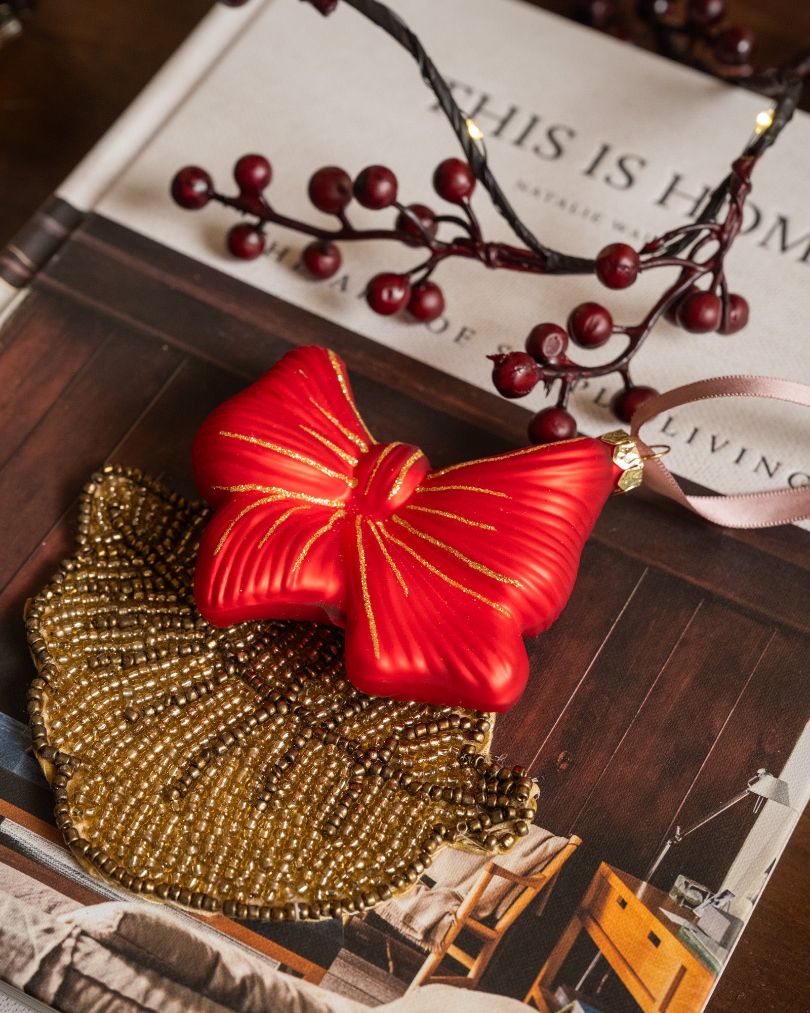 XMAS Ornament Bow Red Glitter