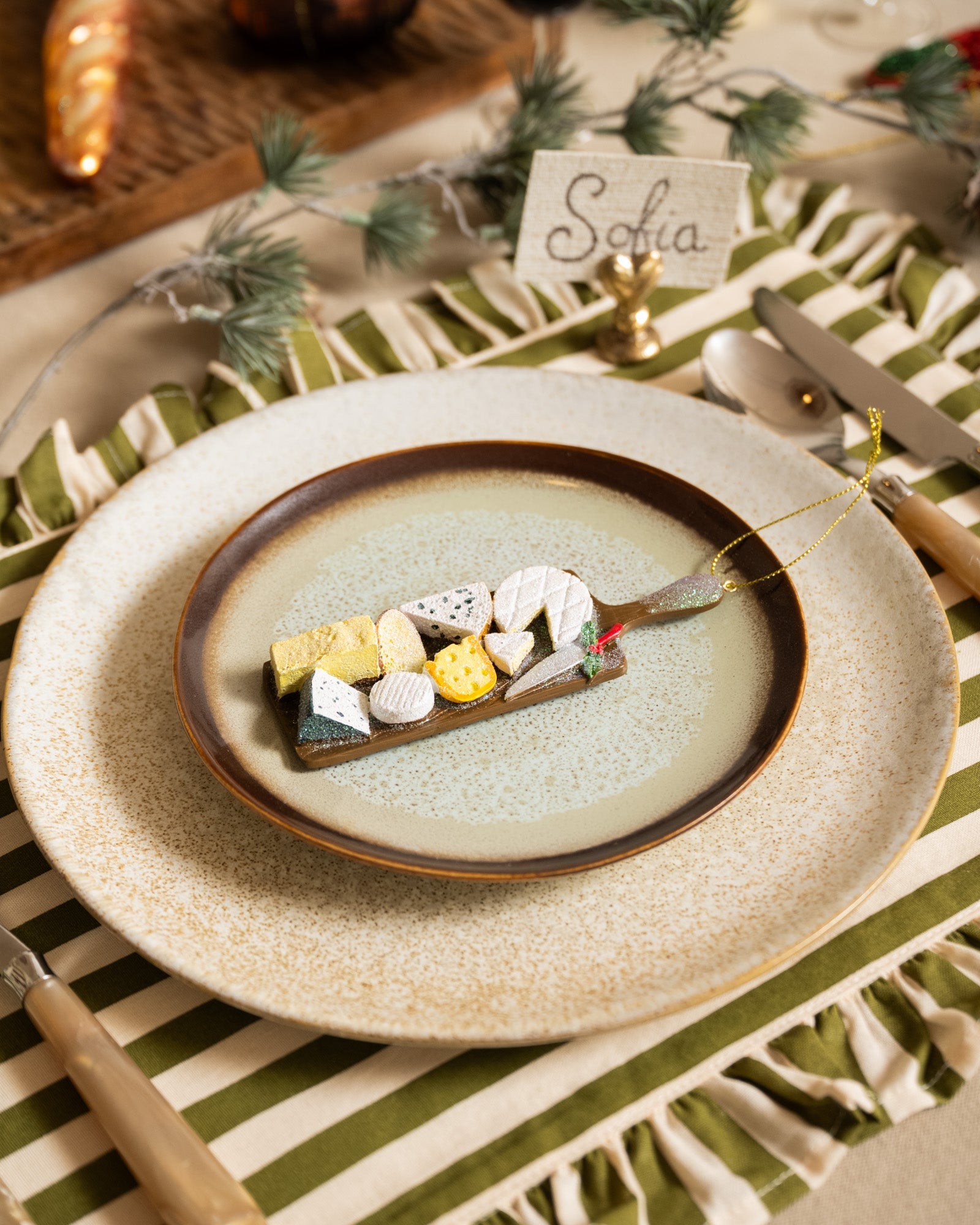Vier de feestdagen in stijl met de XMAS Ornament Cheese Platter! Dit feestelijke ornament, vol met mini kazen en sprankelende details, is perfect voor de echte levensgenieter. Hang het in je boom en breng een vleugje culinaire charme in je kerstdecoratie!
