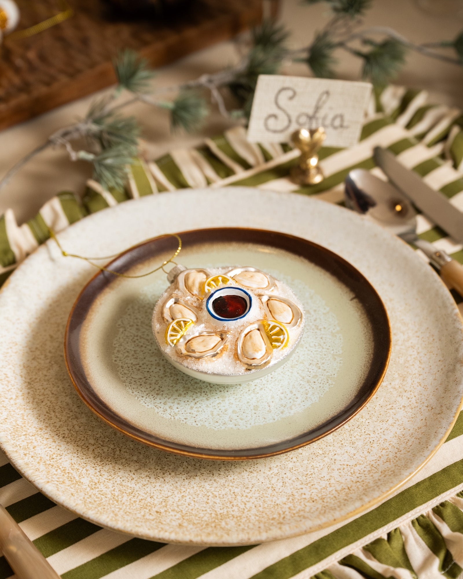 Breng een vleugje culinaire charme in je kerstboom met de XMAS Ornament Oysters! 🦪 Dit glinsterende ornament ziet eruit als een feestelijk oestergerecht, compleet met citroen en saus! Perfect voor foodies met een gevoel voor humor én stijl.