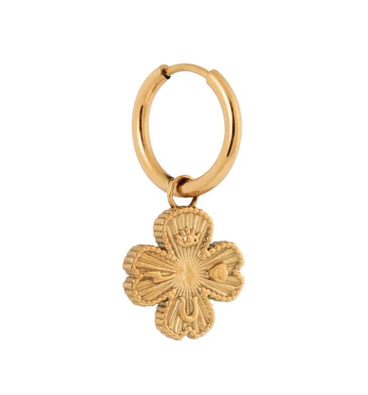 Een beetje geluk draag je gewoon aan je oor 🍀 Deze oorbel geeft je outfit een vrolijke en speelse twist en heeft een handig klik-systeem.