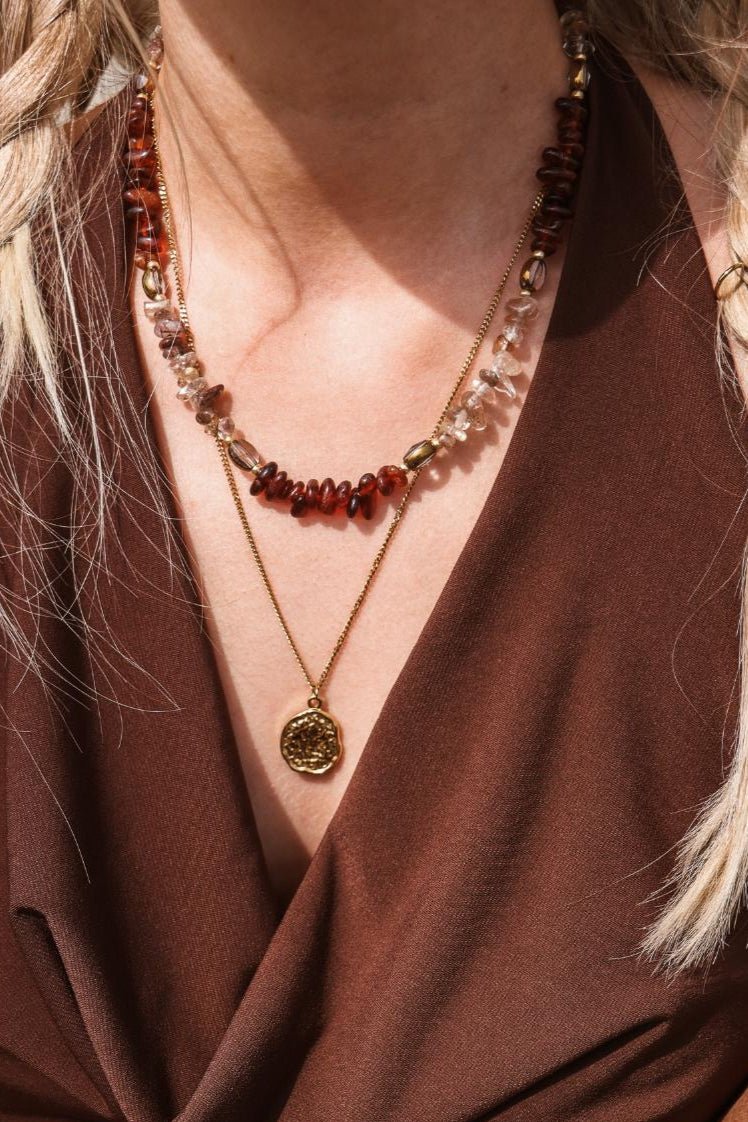 Voor wie houdt van opvallend maar stijlvol! Deze ketting in warme roodbruine tinten is dé eyecatcher van je outfit.