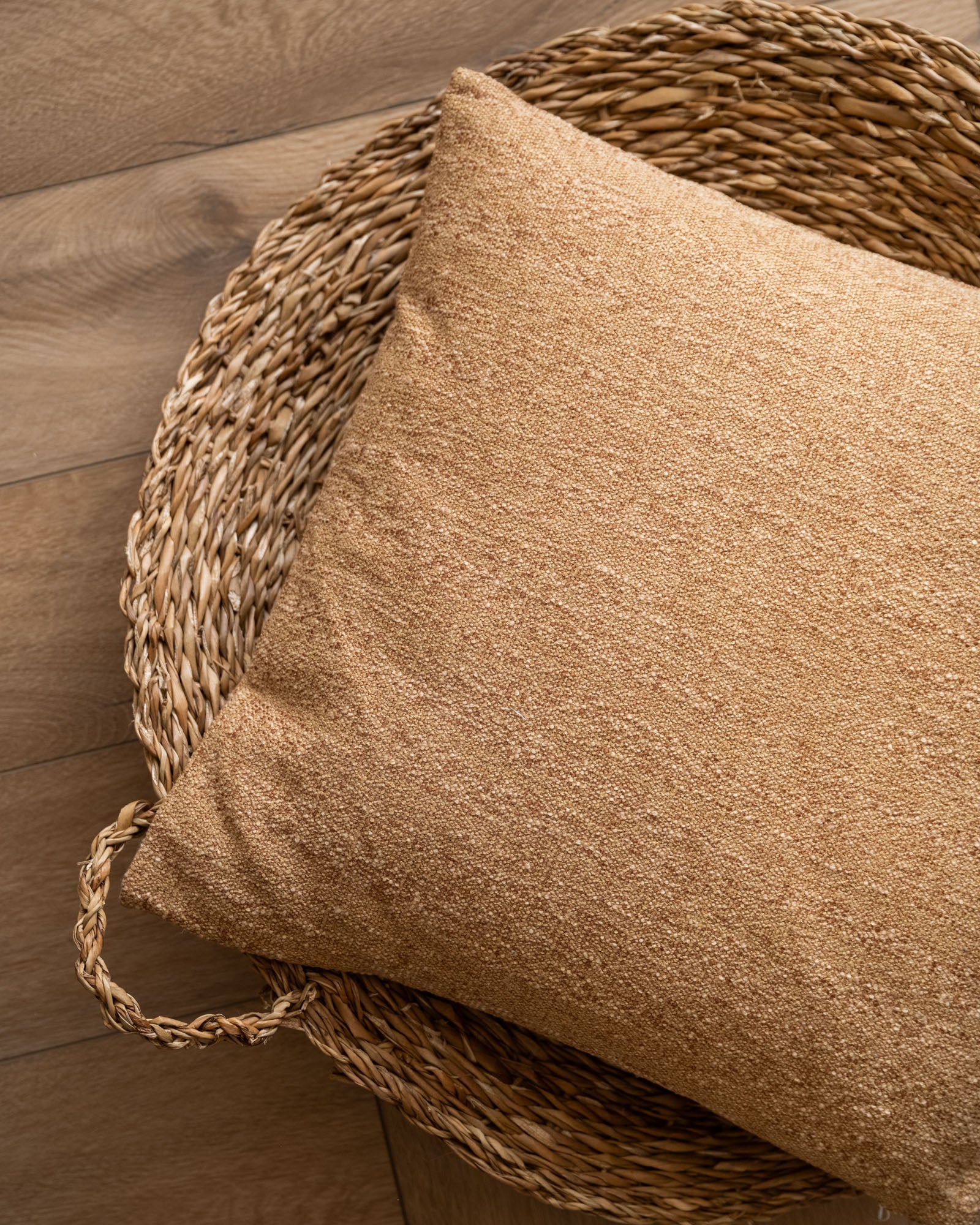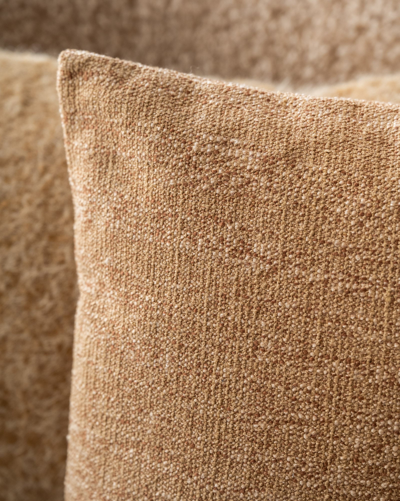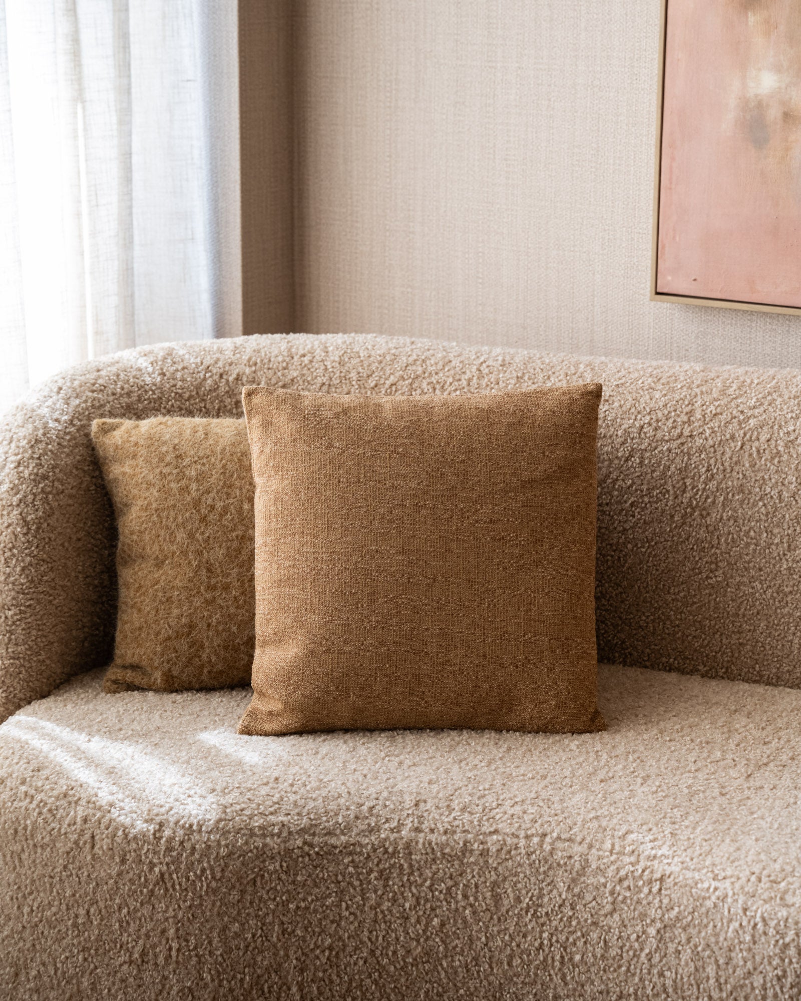 Cushion Dayton Caramel voegt warmte en textuur toe aan elke ruimte. De rijke karamelkleur en de mooie, structuurvolle stof geven het kussen een natuurlijke, cozy uitstraling. Perfect om je bank of bed mee te stylen. Mix & match met andere materialen of houd het rustig met ton-sur-ton tinten. Comfortabel én stijlvol in één!