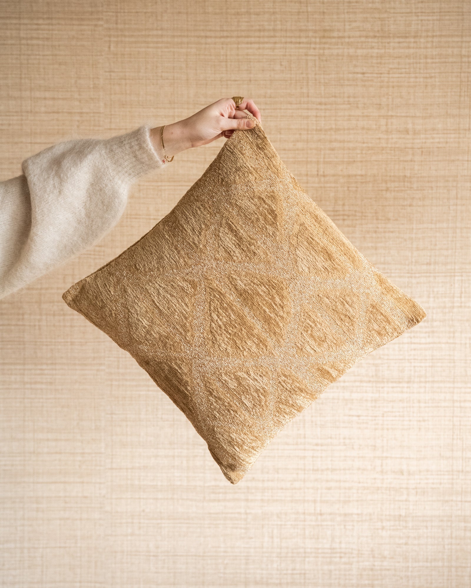 Breng warmte en stijl in huis met sierkussen Munchie in een prachtige ochergele tint. Het zachte materiaal en het subtiele patroon maken dit decoratieve kussen perfect voor je bank, stoel of bed. Een veelzijdig geel kussen dat comfort én een gezellige sfeer toevoegt aan elk interieur.