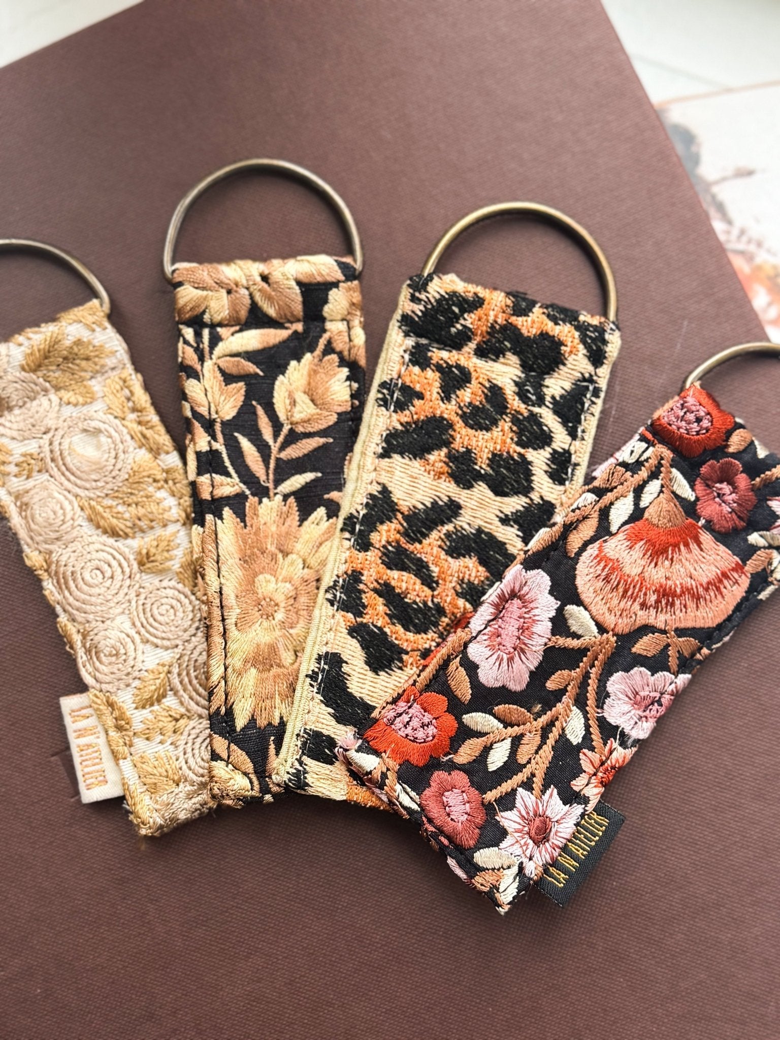 Of het nu de sleutel is van je huis, werkplek, voertuig of hart – die dagelijkse momenten waarop je de sleutel omdraait, worden kleine momenten van schoonheid met deze sleutelhangers. Bovendien zijn deze sleutelhangers gemaakt van restjes stof die overbleven bij het maken van enkele van onze grotere producten, om verspilling te voorkomen.