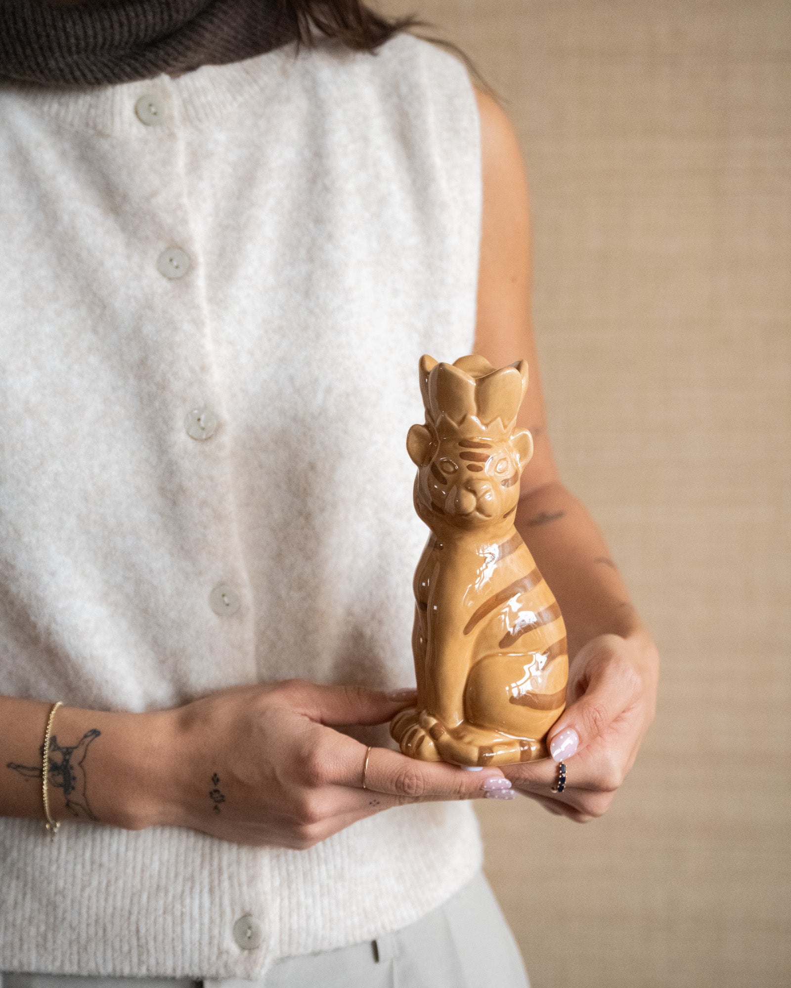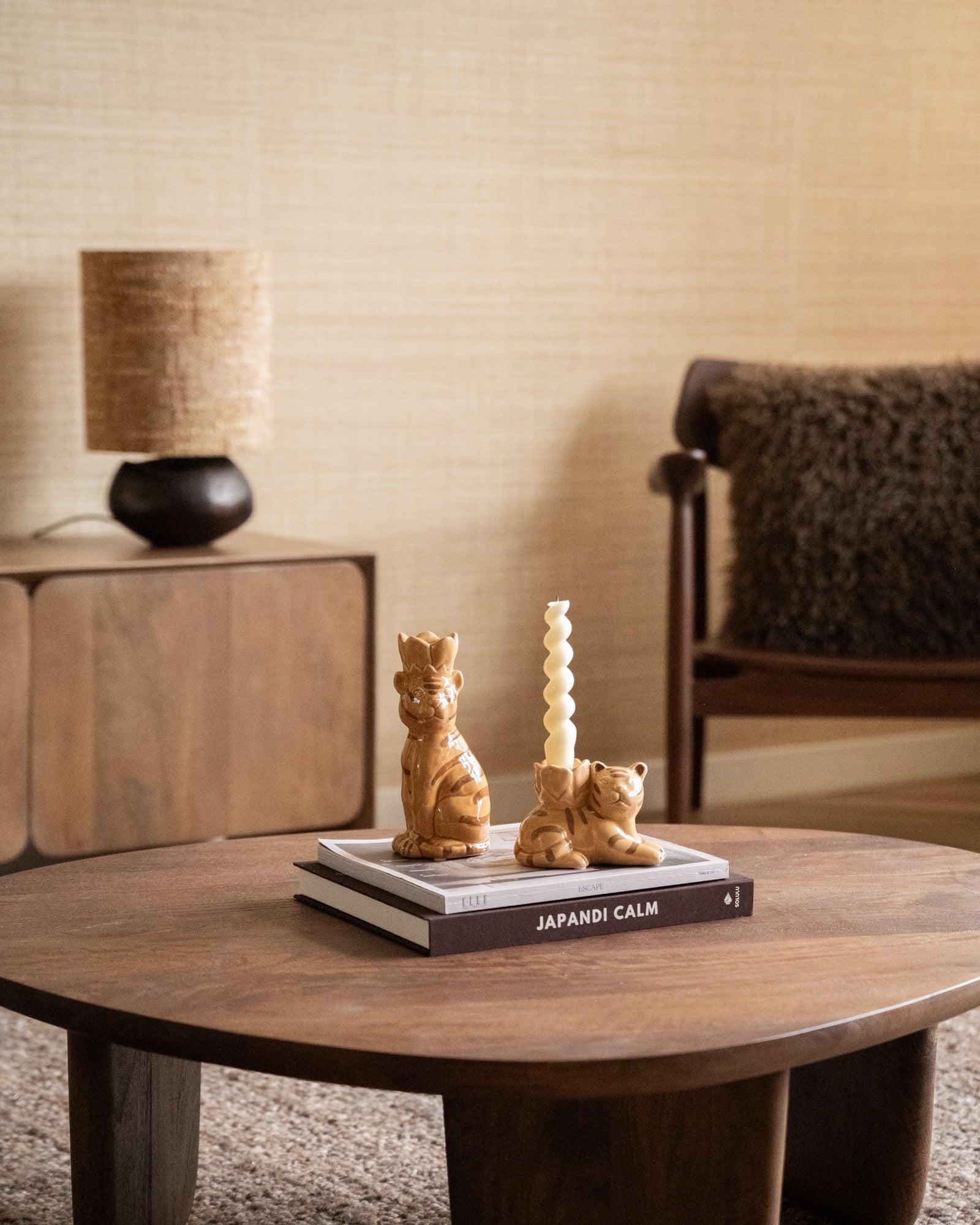 Candle Holder Tiger Ceramic is een speelse keramieken kandelaar in de vorm van een tijger. Het glanzende glazuur en het unieke design maken dit item een echte eyecatcher op tafel, dressoir of in een open kast. Mooi op zichzelf, maar ook extra leuk om de twee varianten samen te combineren voor een vrolijk en decoratief geheel.
