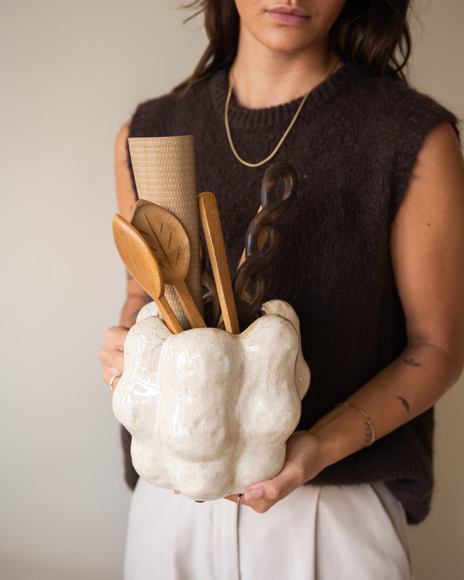 Organiseer je bestek en andere keukengerei met de Cutlery Jar Ceramic Cream! Deze elegante en stijlvolle bestekhouder in een zachte crèmekleur voegt een moderne uitstraling toe aan je keuken en houdt je messen, vorken en lepels altijd binnen handbereik.