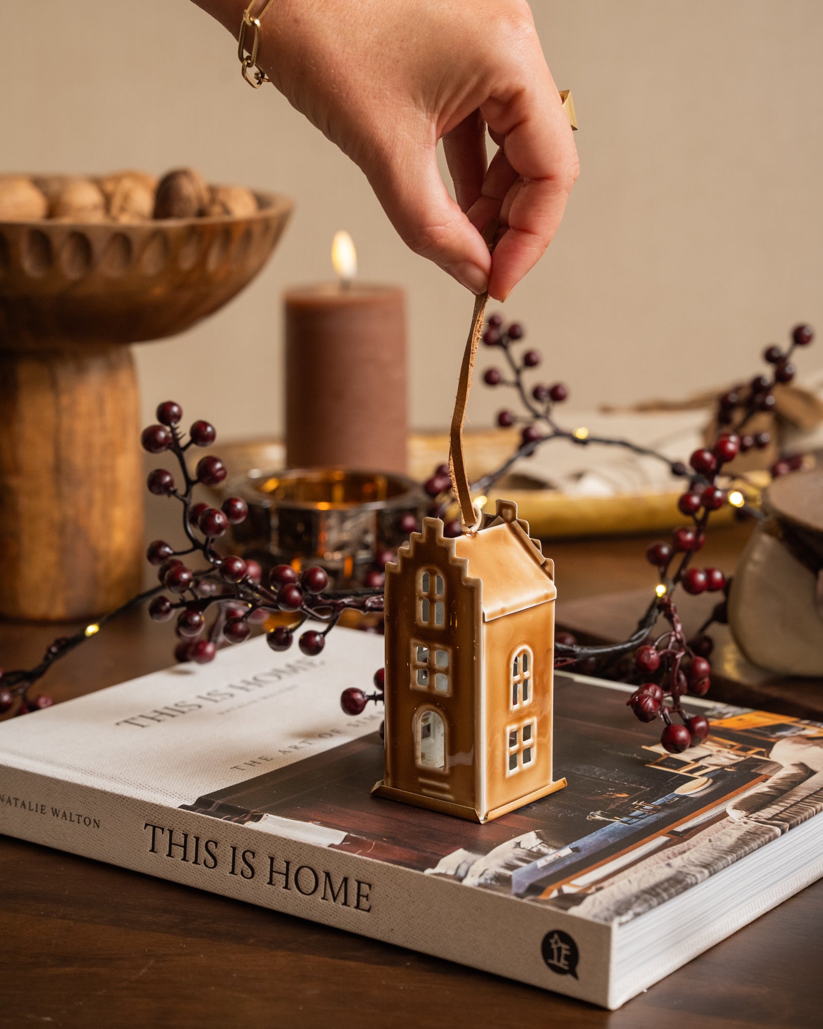 Voeg wat knusse charme toe aan je kerstboom met dit schattige huisje. Het XMAS Ornament Hanging House straalt warmte en gezelligheid uit met zijn karamelkleur en klassieke gevel. Perfect voor iedereen die houdt van een huiselijke, sfeervolle kerst.