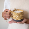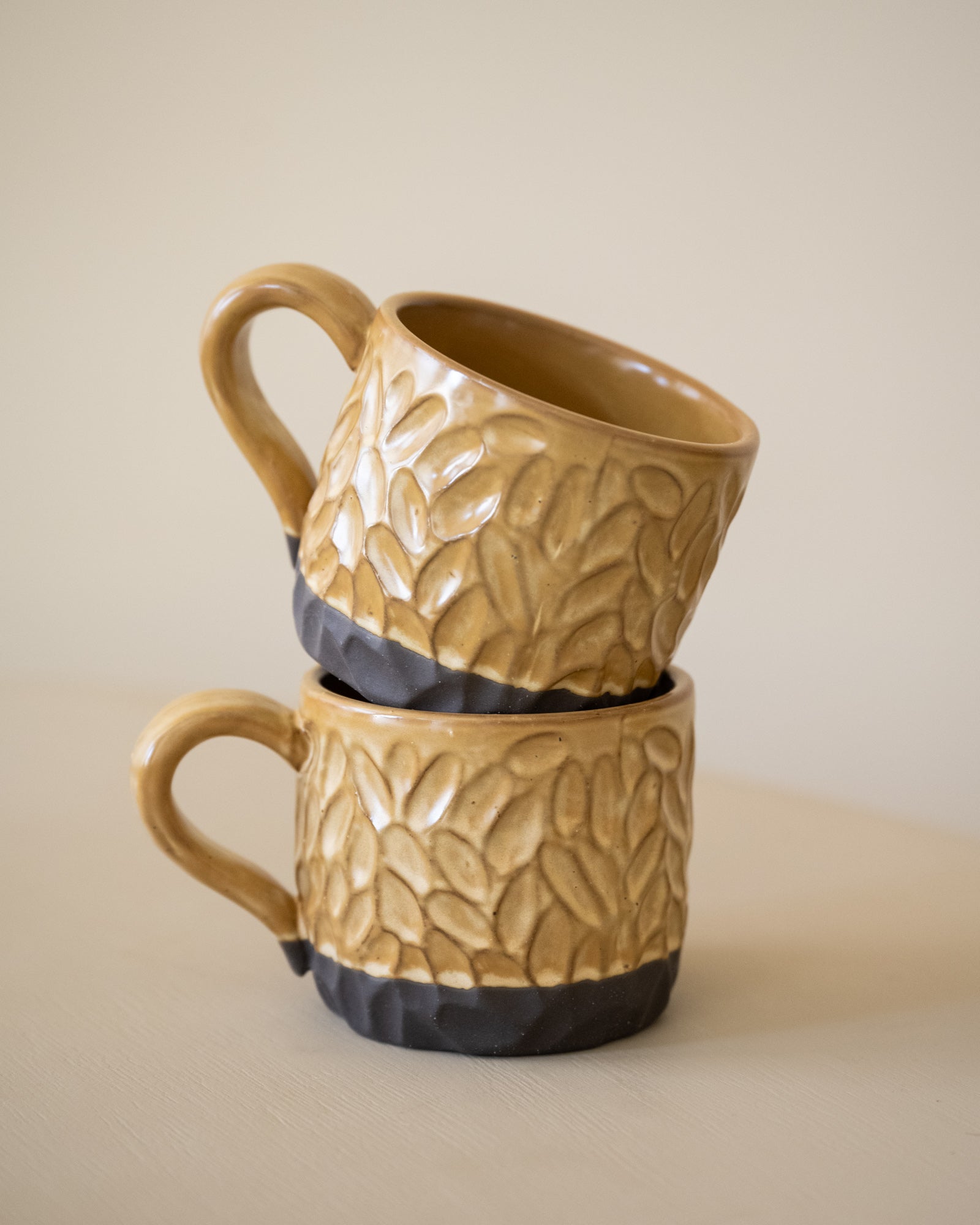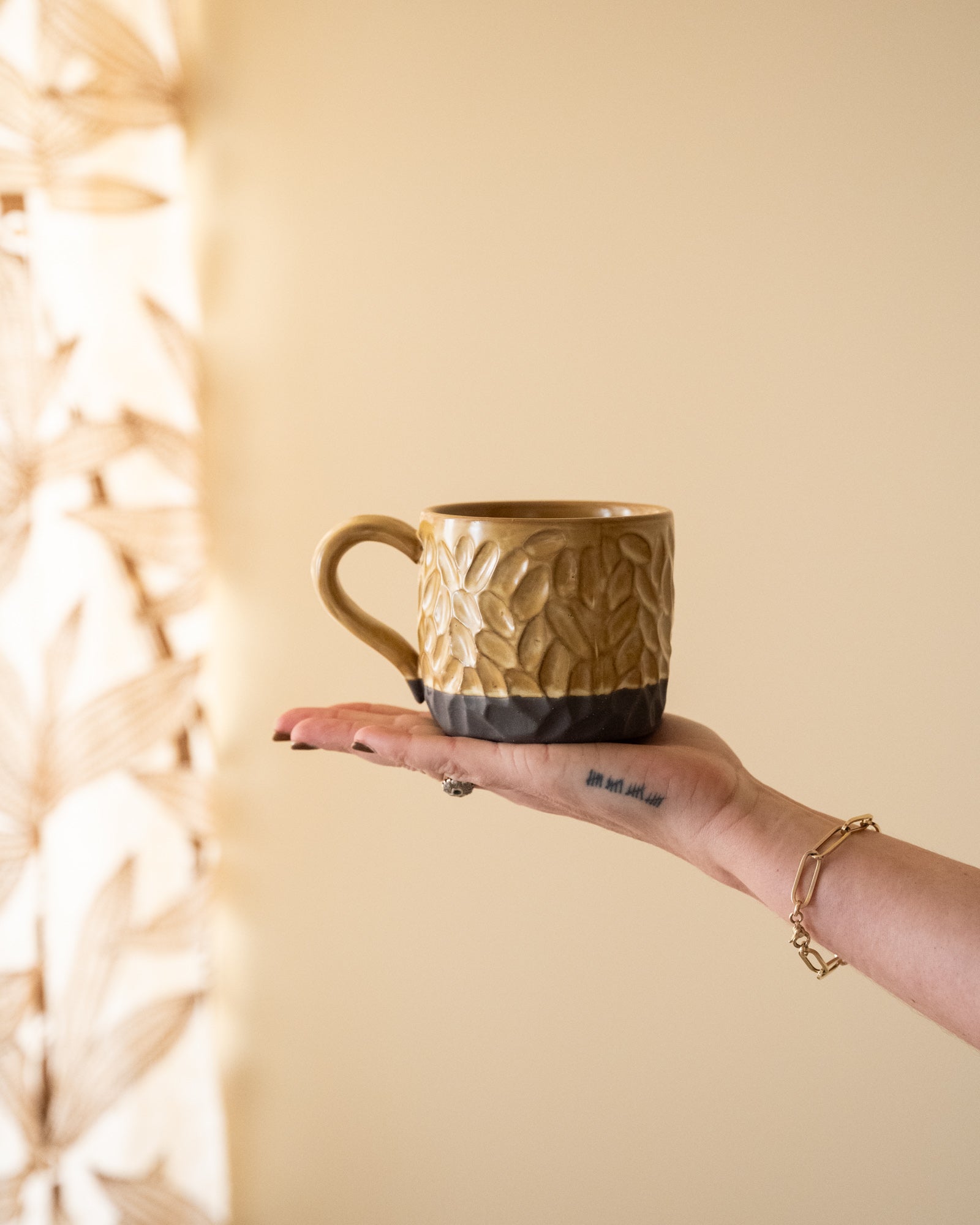 Begin je dag met een heerlijke kop koffie of thee in deze stijlvolle Maja-mok. De warme mosterdtint en het speelse reliëf geven het een unieke en gezellige uitstraling, terwijl de robuuste vorm heerlijk in de hand ligt. Perfect om even te ontsnappen aan de drukte en te genieten van een rustig momentje voor jezelf.